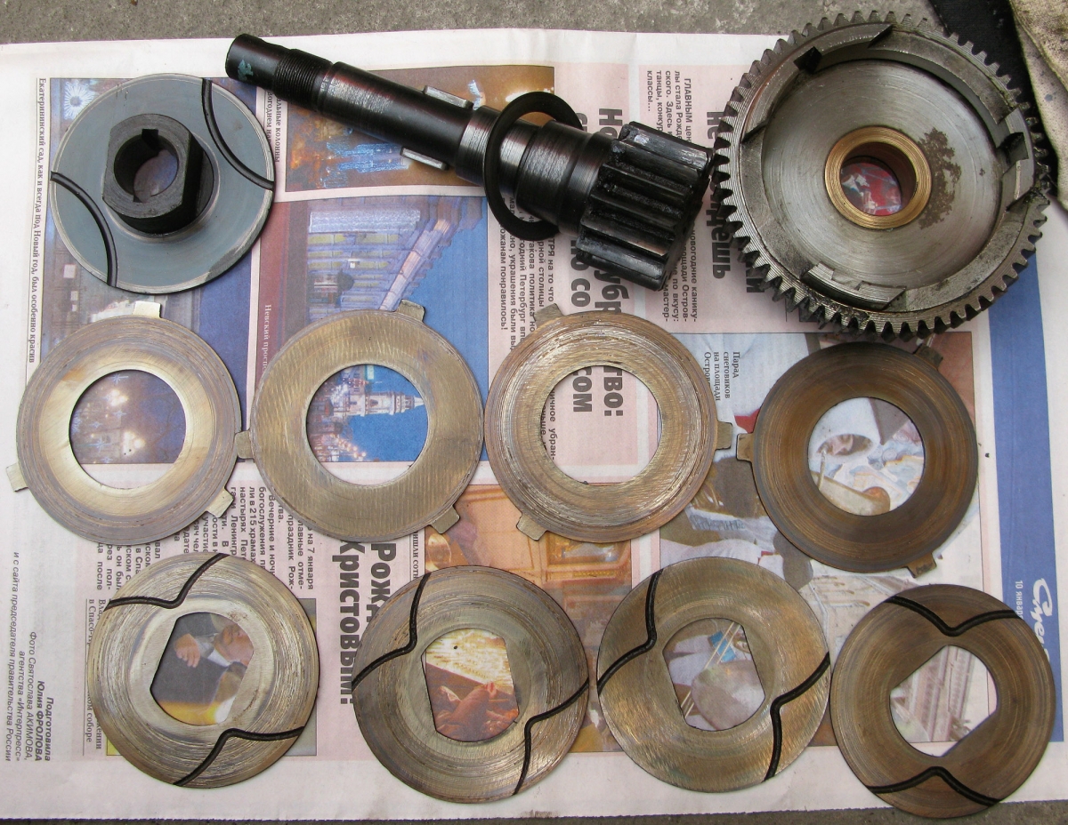 Если металлокерамика то там всего 2 диска вращается от зубчатого колеса (на них есть наплавка из металлокерамики) и 2 закреплено на вал-шестерне через втулку. У обычного сцепления там по 4 диска, т.е. 8 штук.