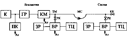 Рис. 2.6. Структурная схема автоматического и электропневматического тормозов пассажирских поездов
