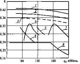 При отсутствии противогазных устройств и скоростных регуляторов тормозного нажатия за оптимальную целесообразно принять зависимость, параллельную полученной при расчете для максимальной скоростн движения поездов и с пониженным на 15—20 % действительным коэффициентом силы нажатия 5, для исключения возможного юза (зависимость 3). Как видно из графиков, изображенных на рис. 6.3, реальные характеристики регулирования тормозного нажатия АР № 265 не соответствуют рекомендуемой характеристике в основном по темпу изменения 5 и диапазону. Это возникает из-за недостаточного рабочего хода демпферного узла АР и несоответствия гибкости рессорного подвешивания вагонов разных категорий регулировочной характеристике воздушного реле. Поэтому регулирование давления в ТЦ происходит до 50—60 %, пока загрузка вагонов не составит 50—60 %, после чего оно не изменяется. Кроме того, основным недостатком таких устройств является повышенный износ их трущихся частей и невысокая эксплуатационная надежность.