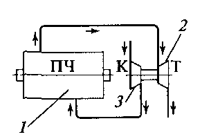 1 — поршневая часть (ПЧ); 2— газовая турбина (Т); 3 — компрессор (К)