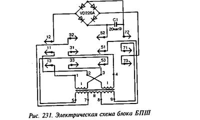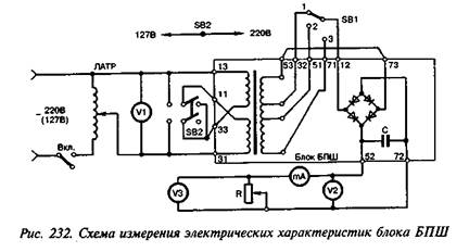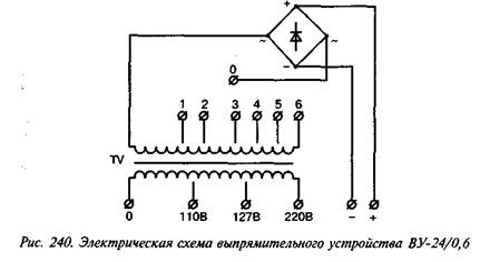 Питание выпрямителей осуществляется от сети переменного тока напряжением 11О, 127 или 220 В, частотой 50 Гц. Сеть переменного тока подключается соответственно к выводам первичной обмотки (I 110 В, или 0-127 В, или 0-220 В.