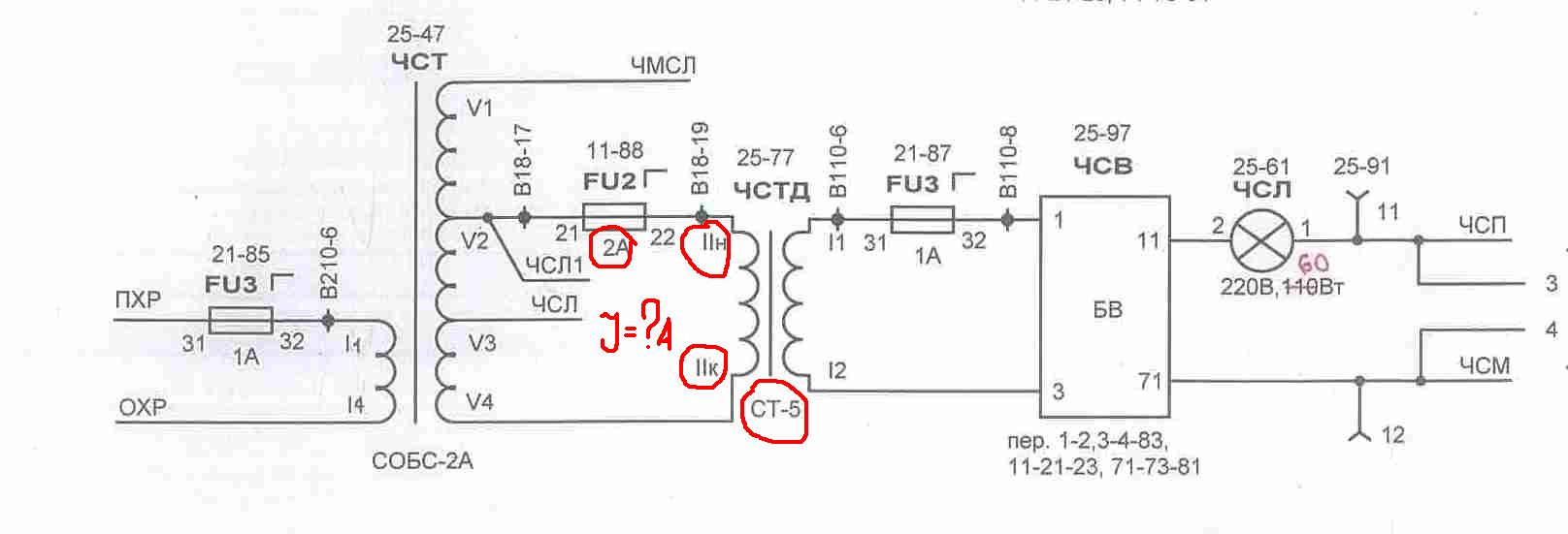 [/IMG]Это для источника питания схемы смены направления. С конкретной станции, проектировал ГТСС. Предохранитель 2А установлен по указанию ГТСС. Обратите внимание: предусмотрена регулировка напряженя в каскаде: на СТ-5 вторичные обмотки IIн - IIк. Если их включить II3 - II4, как было у нас, то ток через 2А предохранитель =1,8А, а если разворачивать АБ, то ток "плещется" до 3А. Значит надо регулировать напряжение на вторичной обмотке СОБС-2А?