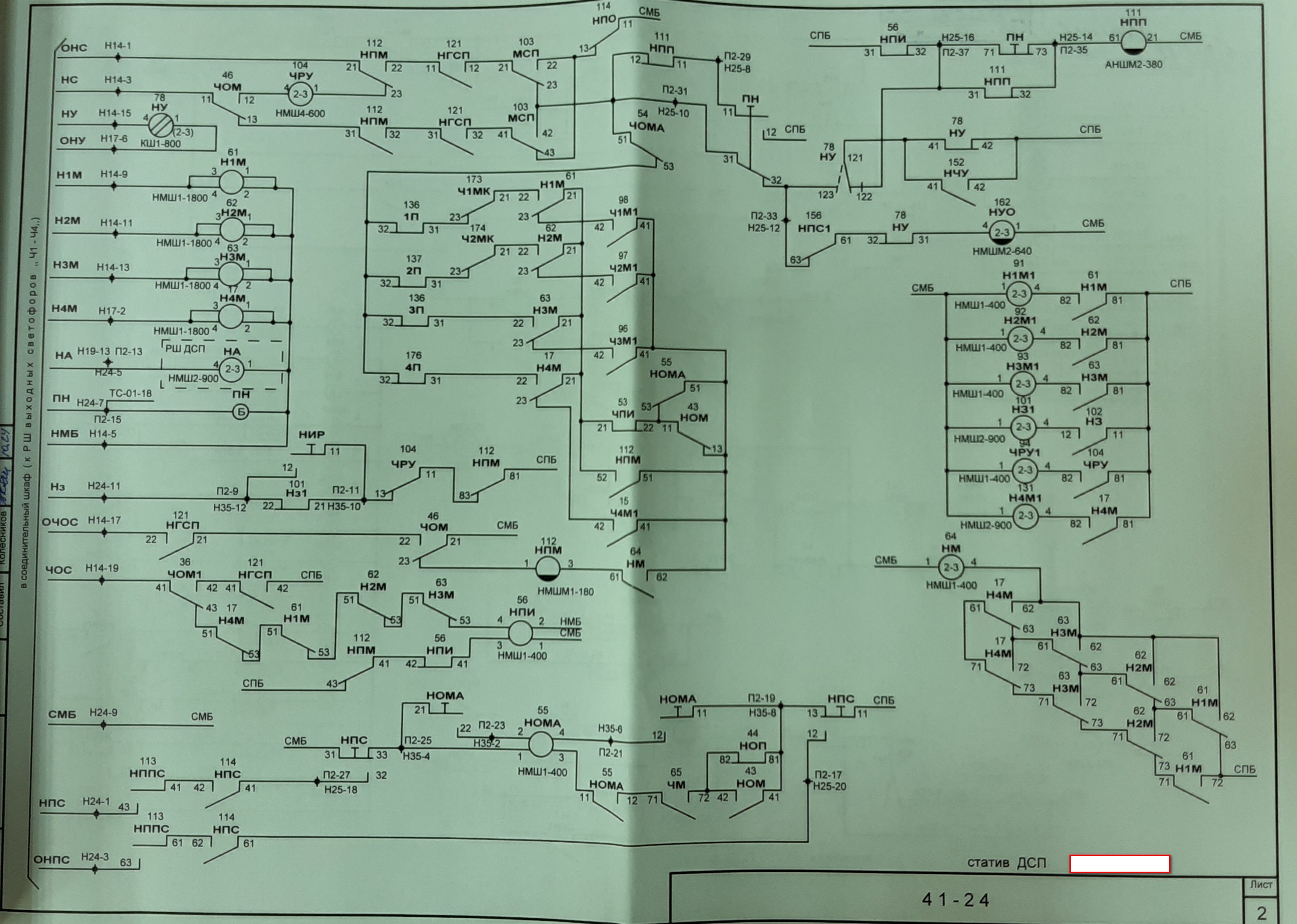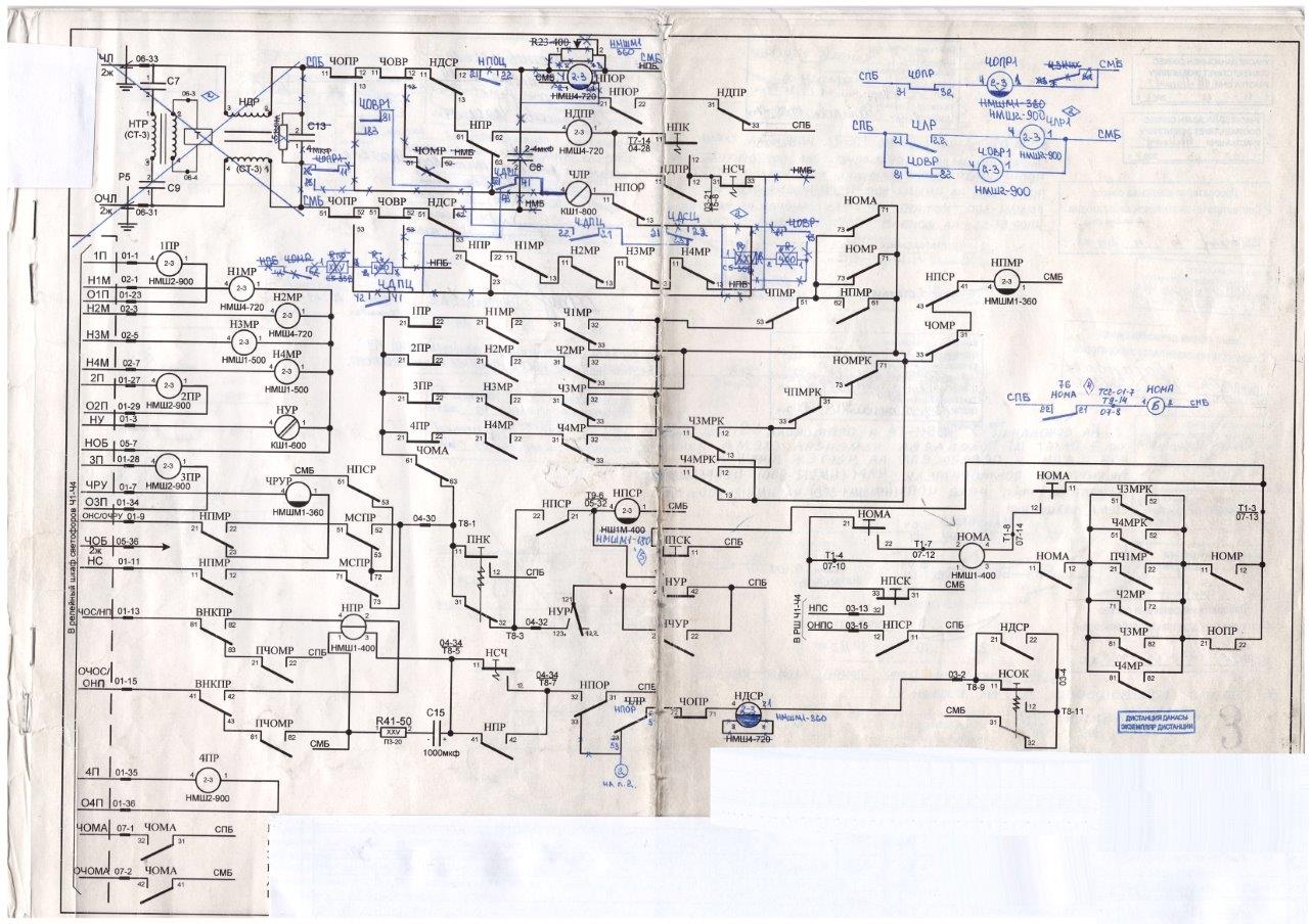 vetal, да, признаю, моя схема отличается от РПБ-4. По какому альбому она, не могу сказать, скорее всего так проектом сделана была, т.к. схема годов 70-х. Эта станция не имеет исключающих реле. Вот схема другой станции, это точно по РПБ-4. Здесь так же с четной стороны два подхода, с главного на 1,2,3,4 пути, с комбината только на 1 и 2 путь, поэтому в цепи НПМ на 1 и 2 путь включены Ч1МК, Ч2МК.