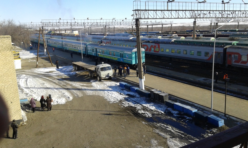 Утром прибыл поезд в честь 20 летия ассамблей народов Казакстана. А на улице -18.