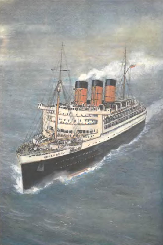 26 сентября 1934 года королева Мэри нажала кнопку, и колосс, простоявший пять лет на стапеле, вдруг ожил и устремился к воде*. Спуск гиганта прошел отлично.