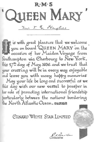 Диплом пассажира первого рейса Куин Мэри