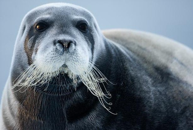 Лахтака на айсберге островов архипелага Шпицберген.