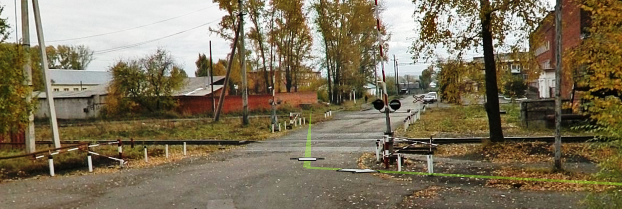 Светофор М-2 точно за переездом. Дело в том, что нижний переезд на самом деле не общий для двух путей, а раздельный! По главному пути шлагбаумы, по пути 7 только крестики стоят. Я такое видел только на этом пути.