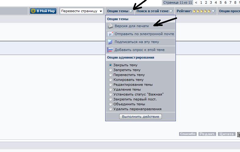 лучше всего делать так: мышью выделяем нужный текст, правой кнопкой мыши - Копировать, создаем пустой документ Word - правой кнопкой мыши - вставить И далее печатем из ворда ________________________ 2-й вариант - идем вверх страницы с темой, жмем на белую стрелочку как показано на рисунке ниже и в раскрывшемся списке жмем на Версия для печати ![]() Страница загружается в облегченной версии. Далее в интернет-браузере жмем меню Файл - печать - печатаем форум, выбираем ту страницу, на которой нужное сообщение, остальные страницы выбрасываем |
