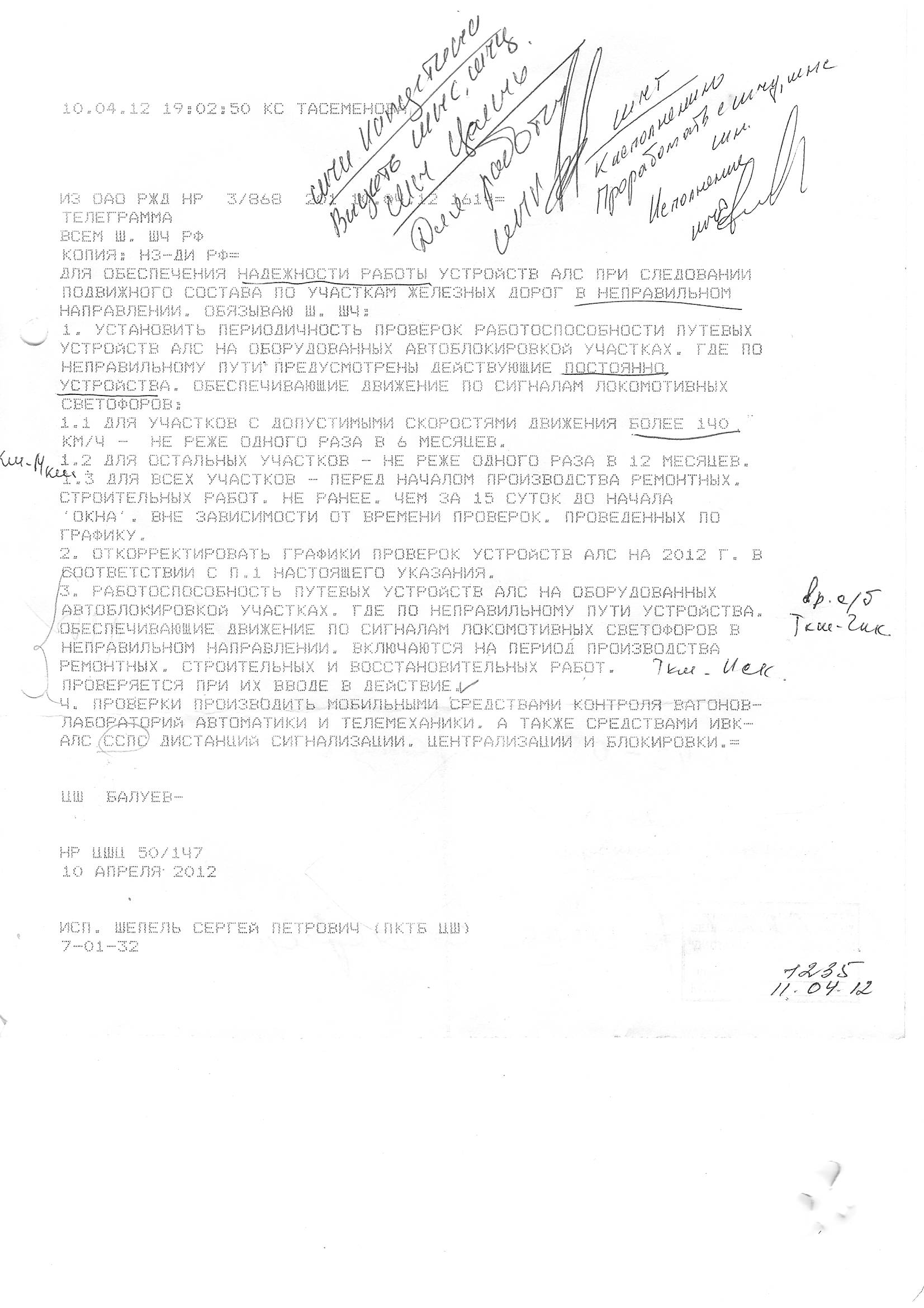 В ШЧ11 есть участки оборудованные системой УСАБ-М. При проезде ДКИ Интеграл, вагоном -лабораторией Атлант, да и просто комплексом ИВК на мотовозе постоянно просматривается такая картина: ![]() ![]() на отдельных рц ток протекает не на возрастание, а на уменьшение, интервал скачет (при последнем проезде: 1-й рис. от 0.098 до 0.135 с., 2-й рис. от 0.107 до 0.14 с.). Работники ШЧ ссылаются на невозможность регулировки из-за специфики системы, при этом, данная ситуация просматривается в обоих направлениях. Возникает вопрос, действительно ли это так, и данная система УСАБ такая не предсказуемая, или это просто отписка от незнания или не желания что-либо делать. Данные отклонения фигурируют в замечаниях уже довольно длительное время. Пожалуйста, если есть специалисты, знающие систему УСАБ, помогите разобраться, хотя-бы определиться в какую сторону "рыть". За ранее огромное спасибо, и с наступающим ДНЁМ ПОБЕДЫ! Последний раз редактировалось Бармик; 07.05.2012 в 12:25. |