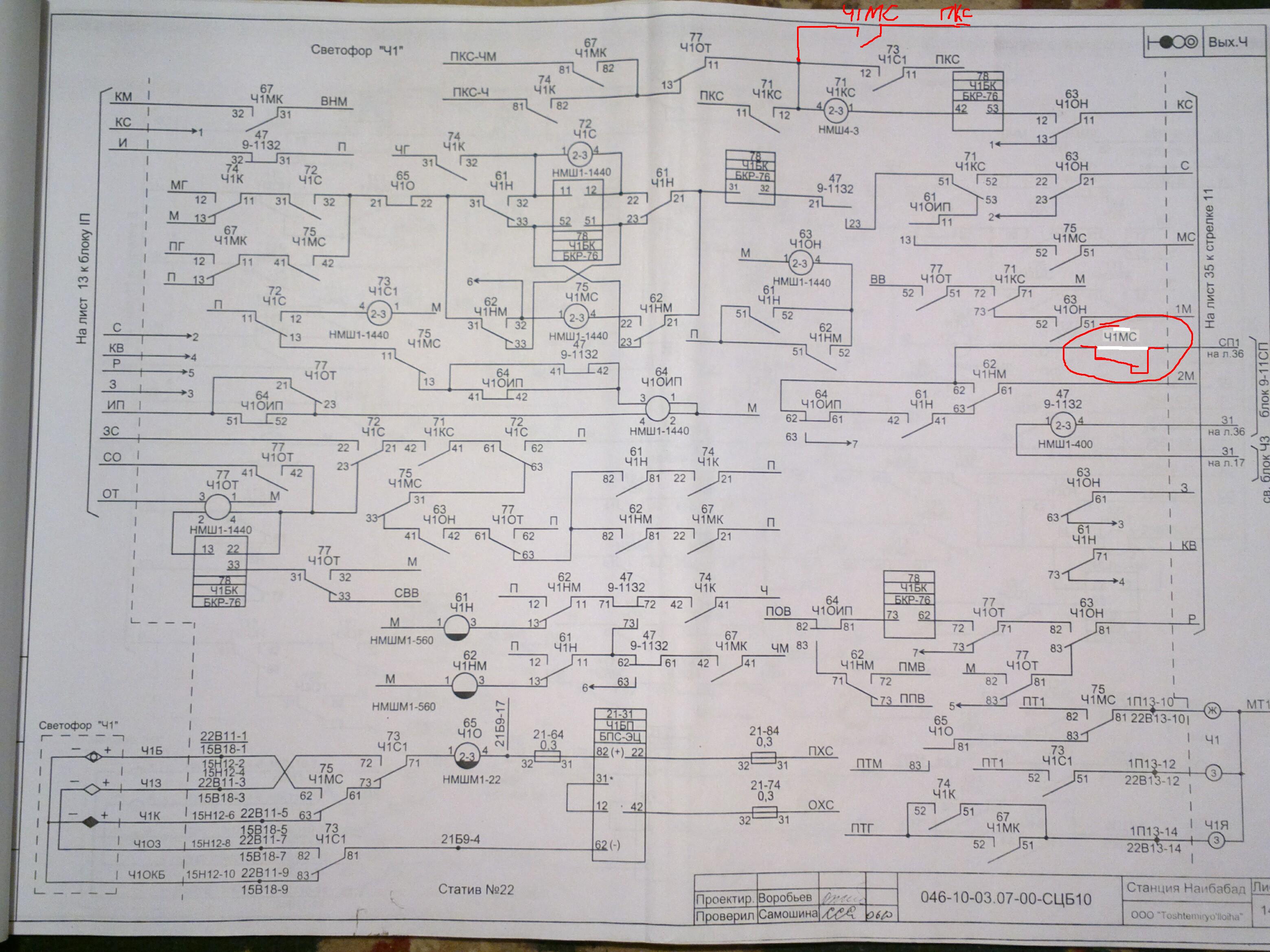 Не давно движенцы заметили, что при переключении фидеров перекрывается маневровый сигнал с путей, а с горловины на пути не перекрывается. Вот начал разбирать схему, оказывается КС маневровых сигналов с тупиков и с горлавин стоят НМШМ1-11 т.е. медленно действующее, а с путей НМШ4-3. По этому если к примеру с 1П открываю за М2 при переключении фидеров сигнал перекрывается, а с М2 на 1П не перекрывается, так как М2КС НМШМ1-11, а Н1КС НМШ4-3. Но когда поездной выходной открываеш с 1П , чтоб не перекрылся в цепь Н1КС включен контакт Н1С у которого в цепи сидит кондер. Я в этот контакт параллельно попробовал посадить контакт Н1МС, ну и перестал маневровый сигнал перекрыватся, вопрос, почему в схеме это не предусмотрено и как быть, поменять КС на медленно действующее или контакт МС добавить , и к чему это может привести. Заранее спасибо ! ЭЦ-12-83