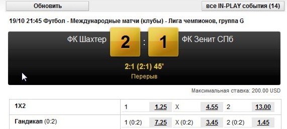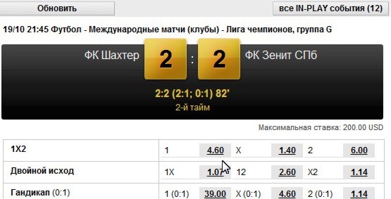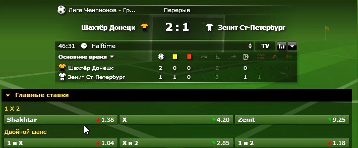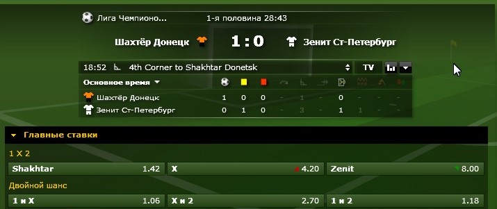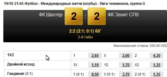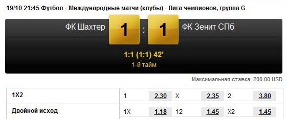 Ставки в букмекерских конторах видели ? ================================================== ===================================== «Шахтёр» – «Зенит» 19 октября 2011 года.Украина. Донецк. Стадион «Донбасс Арена» Лига чемпионов. 10 -я минута. Судью на МЫЛО!!! А пеналь парировал как воротник ! 15-я минута : ГОООЛЛЛЛ !!!!! 1:0 Ставки в Букмекерских конторах изменились ! Щелкните, чтобы увидеть содержимое
