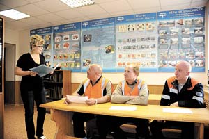 Тема: «Будем решать вместе». Охрана труда при поддержке и «сверху», и «снизу»«Будем решать вместе» Охрана труда при поддержке и «сверху», и «снизу» ![]() – Аппарат предприятия сильный и сплочённый – команда! Каждый болеет за дело, буквально «трясётся» за свой вопрос. Эти усилия складываются, и получается неплохой результат, – так охарактеризовала коллектив Московской дистанции гражданских сооружений начальник контрольно-ревизионного сектора службы охраны труда и промышленной безопасности Людмила Крылова после аудита. Кроме ремонтных участков, в составе предприятия сохранилась автоколонна. Производство в дистанции многопрофильное. В этом и заключается основная сложность: разные технологические процессы, различные условия труда. – Объём работы огромный, боялась, не справлюсь, – инженер по охране труда Любовь Рябелкина трудится в НГЧ-1 полтора года. – Но сразу ощутила помощь и поддержку. Едва устроилась, дистанция попала под проверку и вышла из неё с хорошими результатами. Это говорит о том, что пришла я не на пустое место: работа по охране труда уже была поставлена. Моя предшественница Ольга Юдина передала дела в полном порядке. Она была моим наставником. Очень серьёзно относятся к вопросам безопасности руководители дистанции. Если говорю о проблеме, в ответ всегда слышу: «Будем решать вместе». Но поддержку я ощущаю не только «сверху», но и «снизу». Главное – дать понять работникам, что охрана труда – не набор отвлечённых правил и требований, а основа сохранения их здоровья. И когда с ними разговариваешь как с людьми, а не как с рабочей силой, то отдача в ответ гораздо больше, чем при нажиме. Хорошая оценка работы по охране труда – это заслуга всего нашего коллектива. Попасть в такой, найти своё место в нём – большая удача. Много средств руководство предприятия вложило в оборудование кабинета по охране труда. Удобный, вместительный, он снабжён всеми необходимыми для учебного процесса материалами и наглядными пособиями. Гордостью специалиста являются информационные уголки на участках. В них размещены программа мероприятий по охране труда, графики проверок и медосмотров, их результаты, материалы разборов нарушений. Работник может получить все сведения самостоятельно. Это – необходимость, когда работа на предприятии имеет разъездной характер. По той же причине в дистанции делают упор на работу уполномоченных по охране труда. – Благодаря их информации я могу подготовить больший объём документов и всегда знаю, на что обратить внимание в организации труда на данном участке, в чём люди там испытывают нужду, – поясняет инженер. – По участку Ховрино активно работает штукатур Фирдавус Маликова, в вопросах охраны труда она способна заменить мастера. По станции Клин помогает маляр Татьяна Иванова. В Твери заведующая общежитием Татьяна Казачок наладила взаимодействие с узловой рабочей группой. Любовь Анатольевна заострила внимание на сотрудничестве со снабженцами: – В подразделении никогда не возникает перебоев со спецодеждой и СИЗ. А вот инструментов с изолированными ручками не получаем совсем. Их рабочие покупают на свои деньги. Какие претензии можно к такому инструменту предъявить: удовлетворяет он нормам охраны труда или нет? Это собственность работника. Годами кочуют из заявки в заявку кулеры для питьевой воды, теле
