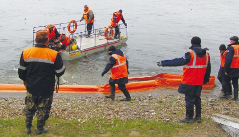 Тема: Три бригады Енисей спасалиТри бригады Енисей спасали Хотя противник был условен, но и урок уже усвоен Дирекция аварийно-восстановительных средств на учебном полигоне станции Подсиний на берегу Енисея провела комплексные учения по ликвидации разлива нефтепродуктов. Восстановительный поезд станции Абакан с главной задачей по отработке навыков взаимодействия разных структур с использованием современных технических средств и проверкой надёжности всех систем управления справился успешно. По сценарию учений, 14 мая в 04.32 по московскому времени на железнодорожном мосту через Енисей в черте Абакана во время движения грузового поезда произошёл сход гружёной цистерны с нефтепродуктами. От удара вагона по фрагменту мостового пролёта нарушилась целостность подушки опоры моста и произошёл разлив нефтепродуктов через пробоину в котле цистерны. Возникла угроза попадания большого объёма нефти в Енисей, являющийся источником питьевого водоснабжения Абакана. Но жертв и пострадавших нет. ![]() Первыми на место аварии, согласно схеме оповещения, выдвигаются участники аварийных формирований – восстановительный поезд, пожарная команда поезда станции Абакан, МЧС Хакасии, ООО «Зелёный город», региональный центр связи и медицинская бригада. По прибытии всех участников учений на полигон до них доводится план, порядок взаимодействия и применения техники. Далее следует снаряжение спецодеждой, инструктаж по охране труда и команда к началу учений. На командном пункте разворачивается система мобильной видео-конференцсвязи с автоматизированным местом врача, и в режиме реального времени идёт трансляция учений. Все работы выполняются тремя бригадами. Первая бригада на плавающей платформе «Тримаран» с якорной системой на борту должна установить заградительные боны для сбора с реки нефти. Но мощность «Тримарана» в 30 лошадиных сил оказывается недостаточной. Слабовата и якорная система «Барьер-50». Стремительное течение Енисея сносит «Тримаран» и головную часть заградительных бонов с центрального места ловушки для нефти. И всё же бригаде удаётся обуздать непокорный нрав Енисея. Пятно с нефтью взято в плен. Быстро и рьяно, согласно сценарию учений, действовали одновременно с первой бригадой другие участники. С помощью порогового скиммера они приступили к сбору нефтепродуктов. К ним присоединились ещё трое специалистов для сбора более густой фракции нефти установкой «Спрут-ПМ». В это время на берегу спешно устанавливают ёмкость из полимерно-тканевого материала для откачивания в неё пленённой нефти из Енисея. Спорится дело и у второй бригады, которая откачивает смесь нефти и грунта в другую такую же ёмкость перистальтической насосной установкой «Ролл» и вакуумным нефтесборщиком «АКСН-10» на базе автомобиля «Урал». Внезапно происходит возгорание нефтепродуктов. Но пожарная команда посредством установки «Пурга» быстро ликвидирует пожар. Одновременно железнодорожники с сотрудниками МЧС обследуют на моторной лодке железнодорожный мост на предмет целостности, ведут фото- и видеосъёмку его опор и пролётов. В задачу третьей бригады входит сбор нефтесодержащих отходов и их вывоз для утилизации на специальную площадку. Впервые к учениям такого масштаба были привлечены все 11 начальников восстановительных поездов дороги. Они участ