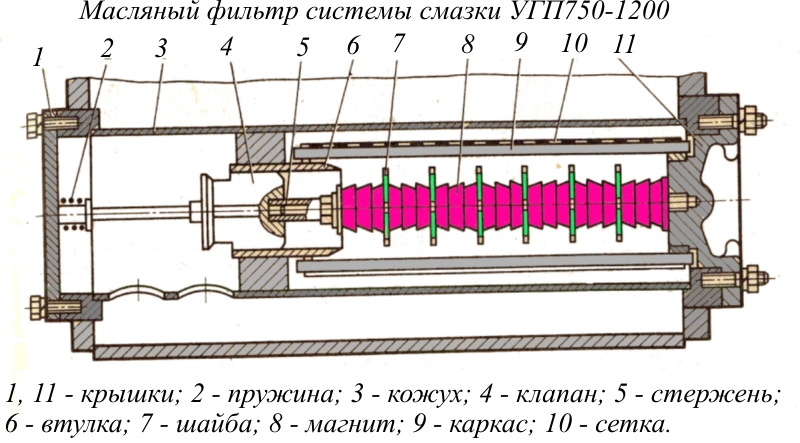 В качестве примера рассмотрим также магнитосетчатый фильтр, используемый в системе смазки гидропередачи УГП750-1200, приведенный на рисунке.