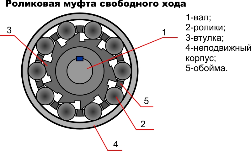 Схема роликовой муфты свободного хода приведена на рисунке.