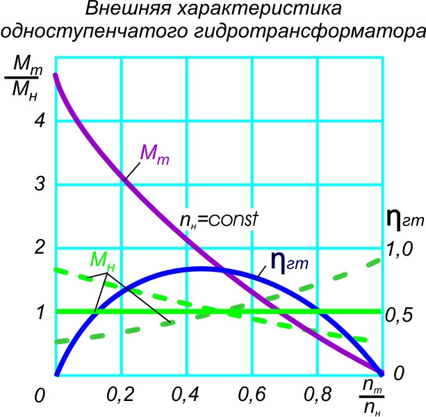 Внешняя характеристика данного гидротрансформатора приведена на рисунке.