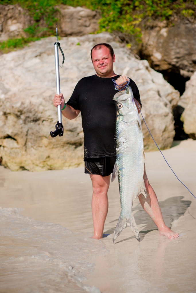 Издеваются над рыбой..... /тот катер на котором они плывут - большой электролов!/