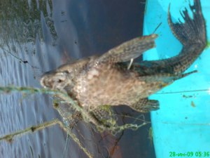 В подмосковных прудах, брат как то нашел запутавшуюся в сетке рыбину...
