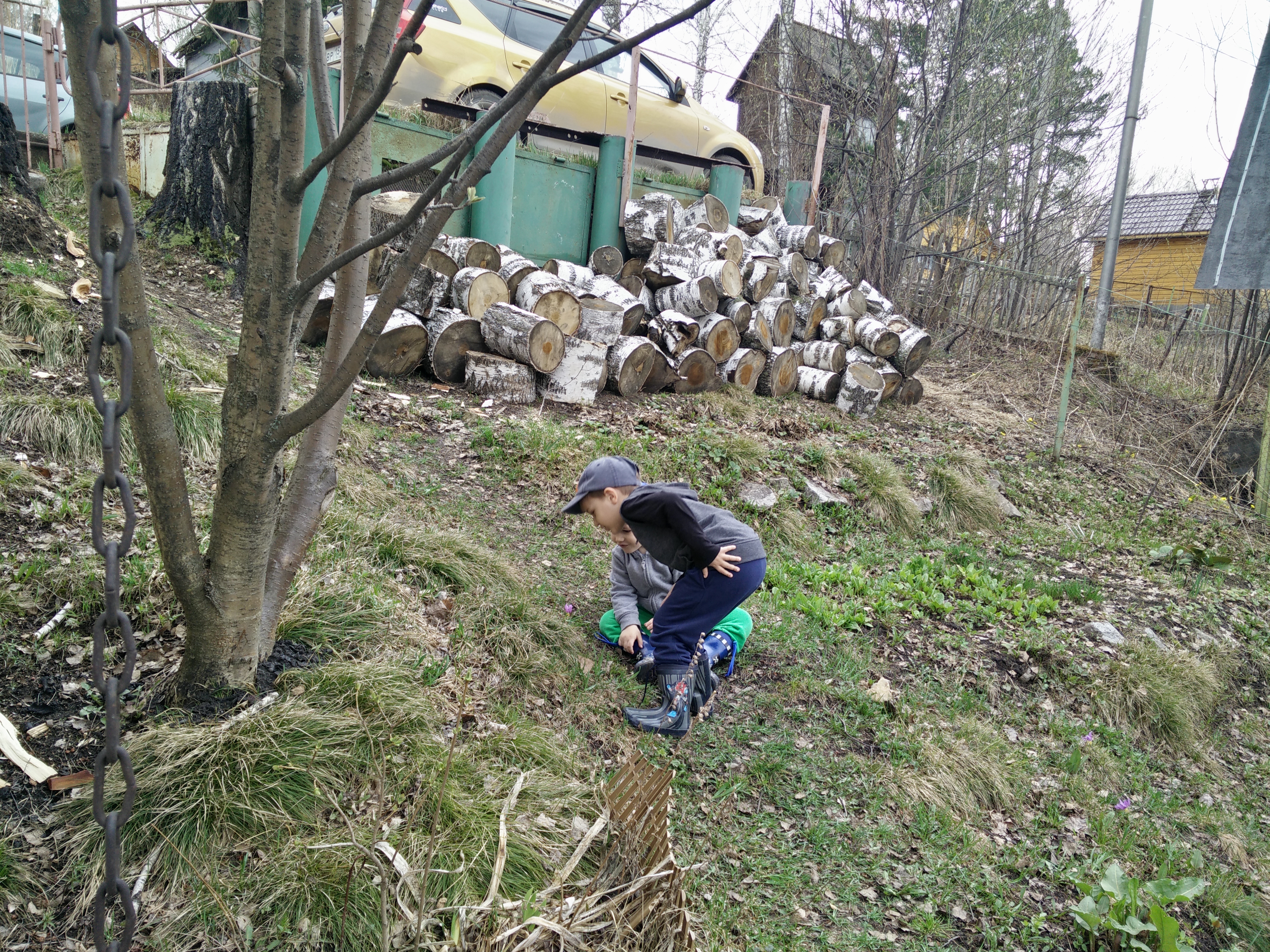 Открыл дачный сезон. В том году спилил 4 березы. Напилил мелочи и начал колоть в марте. Приехал, а там завал поленницы)) Вернул на место и укрепил)) Еще колоть не переколоть... Ну и конечно зелени ещё не так как у сцбистов с СКЖД)))