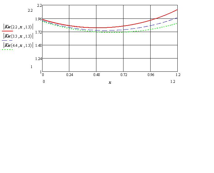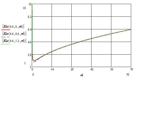 Вот исче график показывающий как меняется Kk от координаты повреждения при постоянном значении сопротивления изоляции.