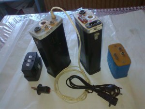 http://morepic.ru/images3/0184_7595.jpg В качестве питания уже больше 20 лет применяю аккумуляторы от радиостанций РН-12Б "Транспорт". Хватает до 3-х км. В середине корпусов собраны схемы зарядки: - слева - конденсаторная; - справа - трансформаторная. Последовательно зарядке (для контроля и защиты) лампочка КМ-12/24-90. Выводы от КПТШ или кому, что нравиться. Трубки или гарнитуры (обязательно низкоомные). А вот красота - уж не обессудьте, как смог. |