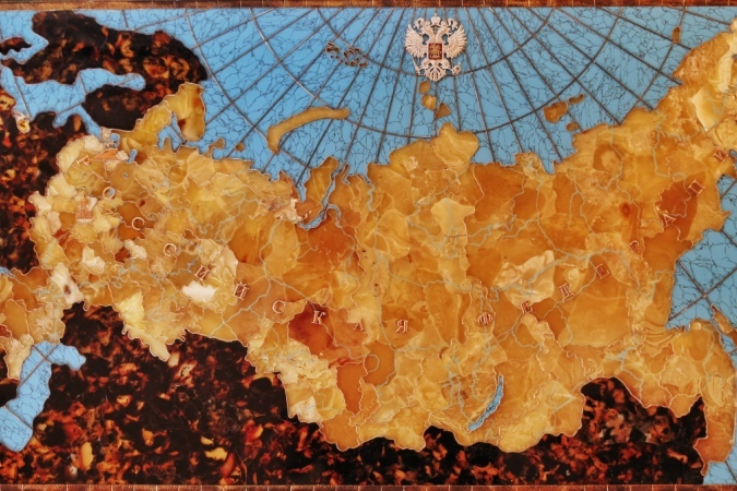 [/IMG]Накануне Дня России калининградские ювелиры изготовили из янтаря, золота, серебра и бирюзы внушительных размеров карту нашей страны. Причем, как говорят, эта карта - первая, на которой изображен Крым как часть Российской Федерации. Трудились над картой два месяца 12 мастеров. Сейчас она украшает одну из стен в музее Калининградского янтарного комбината. Примечательно, что в музее уже есть один подобный экземпляр — карта Калининградской области, которая также выполненная из янтаря.
