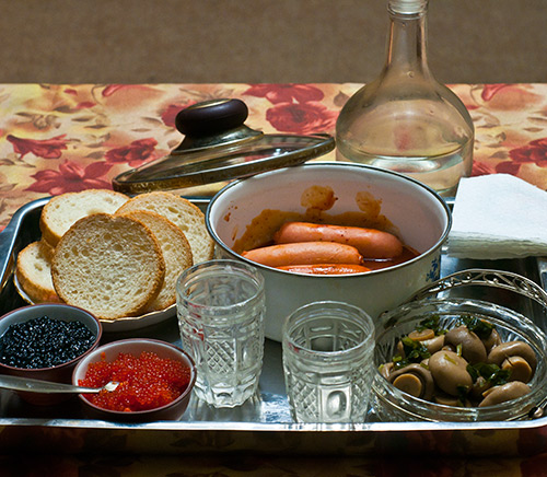 Соус: Пол-морковки Пол-луковицы 2 ложки маргарина Ложка муки 2-3 ложки томат пасты Стакан воды Бульонный кубик Можно добавить: корень петрушки, зелень, перец и другие специи, но это все не обязательно. Все обжарить и тушить на сковороде. Сосиски отварить и смешать с соусом. |