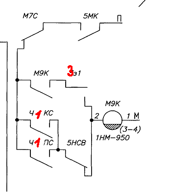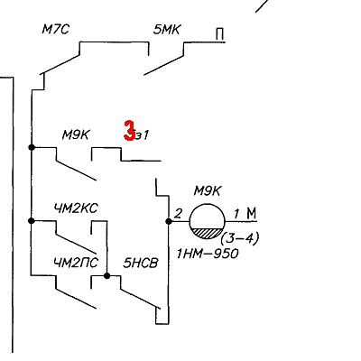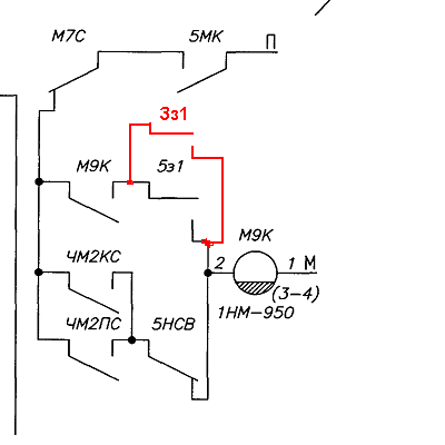 В предложенной Вами схеме как выполнить требование включения красного при открытии ЧМ2 (Ч1 закрыт)? В цепи самоблокировки параллельно 5з1 контакт Ч1С, тогда более-менее красиво получится.