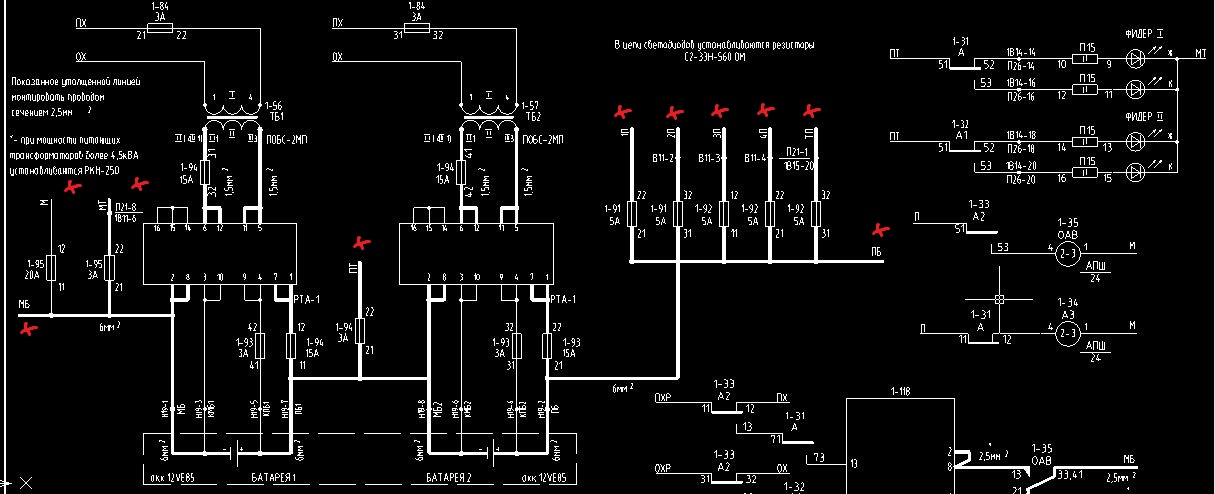 У тебя две группы полюсов питания ПТ-МТ(М,МБ) 12 вольт это для питания пульт-табло (нужно 6В поэтому гасят резисторами 560 Ом), может в кодировании еще используют для ТШ. Вторая группа ПБ(1П,2П,3П,4П,ТП)-МБ(М,МТ) 24 вольта для питания постовых схем. Полюса 1П,2П,3П,4П это стативные плюсы, он же в схемах обозначается П, при этом смотрят на каком стативе контакт (например на А2 подан П, он на стативе 1 (место 1-33) следовательно подразумевается что этот П это на самом деле 1П). ТП это плюс на пульт-табло, как правило на кнопки. Есть третья группа 12 вольт ПБ-ПТ но навряд ли ее используют. Как то так, для студента схема пойдет, в реалии схема кривая.