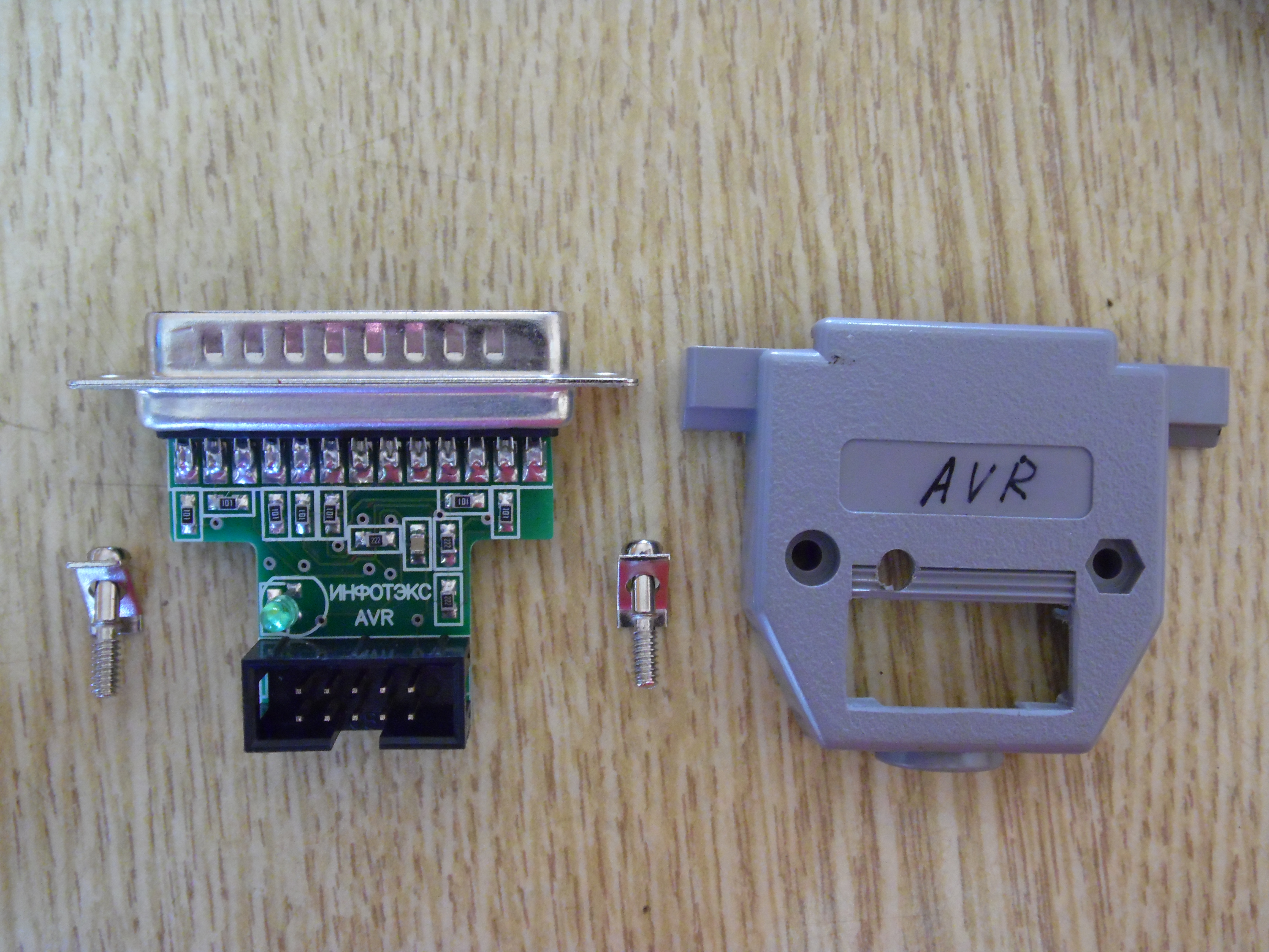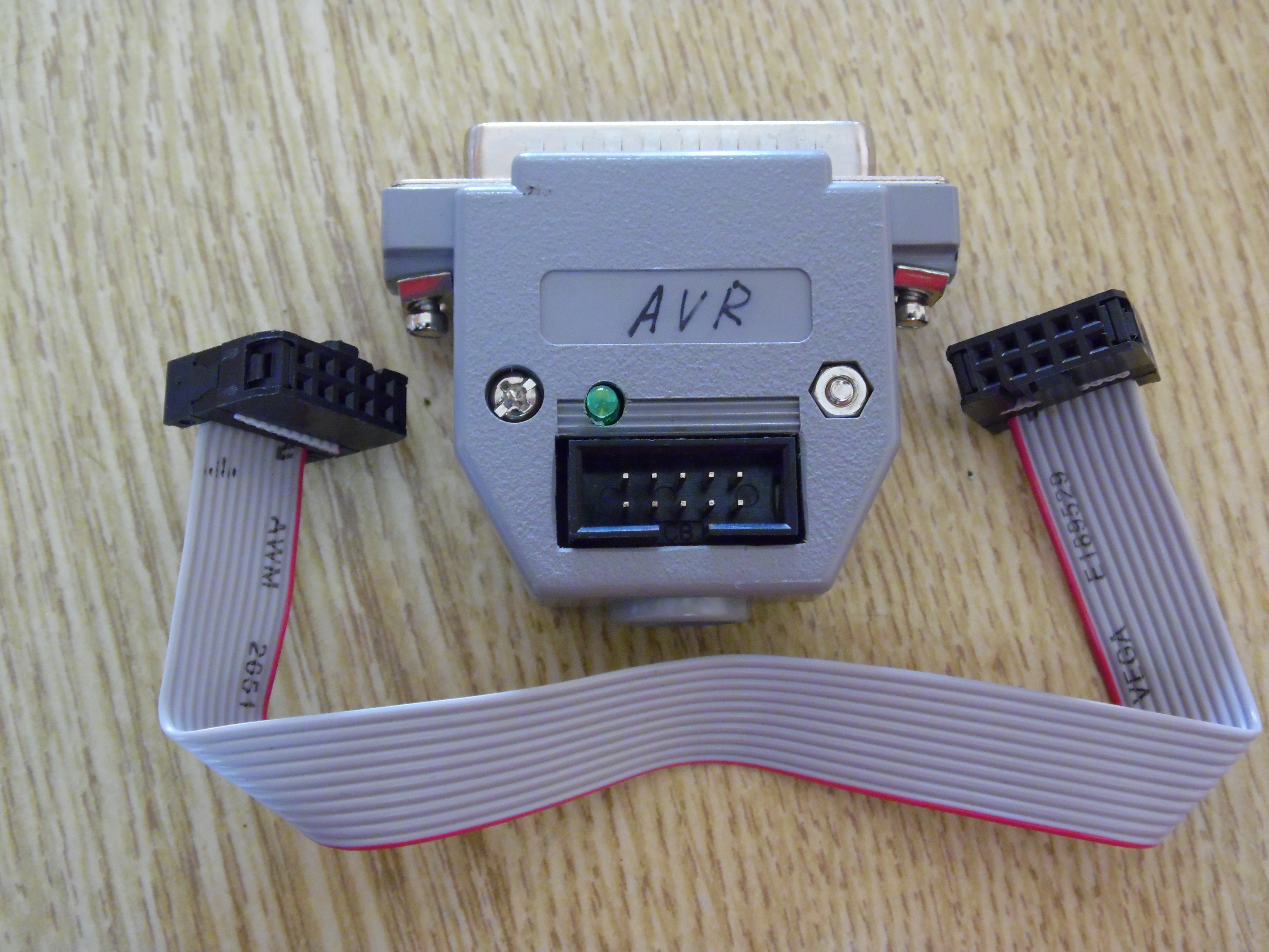Он выглядит очень несерьёзно. Разъём 25 контактный по моему "мама" и из него недлинный шлейфик с маленьким чрненьким разъёмчиком. На большом разъёме написано AVR. Схема спрятана в корпусе разъёма (имхо сам не разбирал, предполагаю )