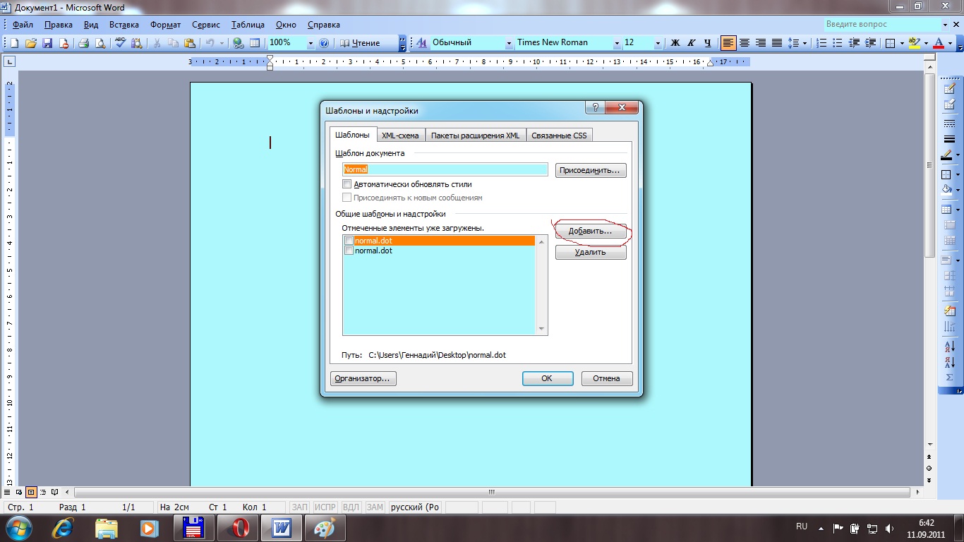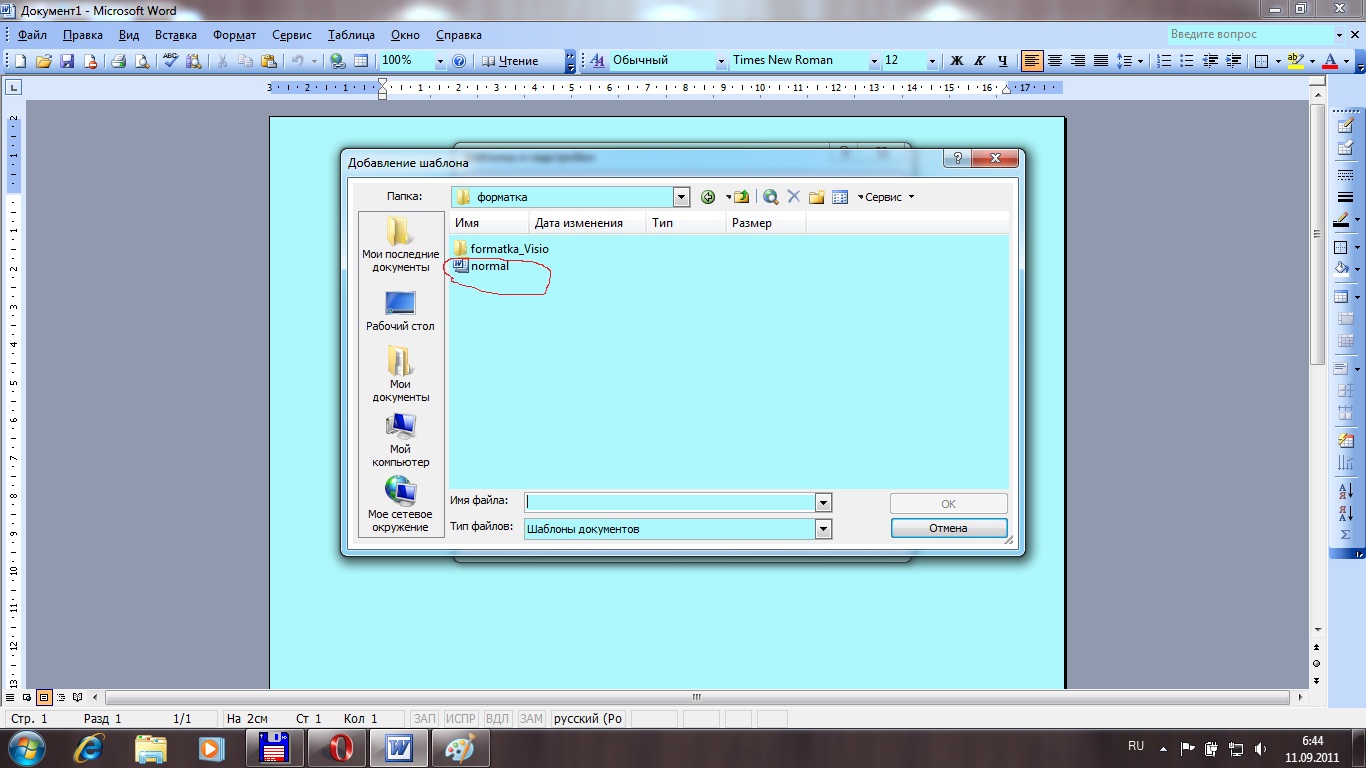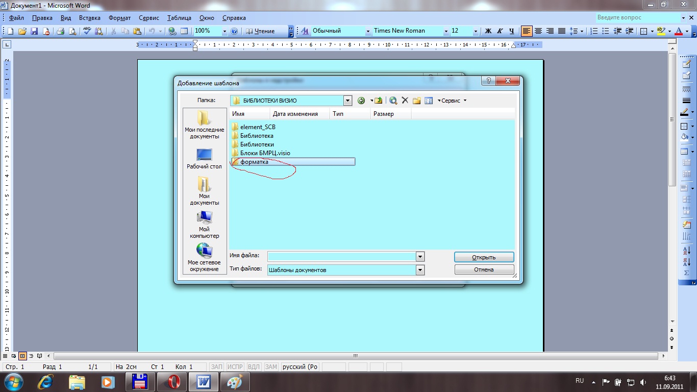 rjnjd-utyyflbq добавил 11.09.2011 в 07:49 Жмешь баннер "Сервис" Выбираешь "Шаблоны и надстройки"rjnjd-utyyflbq добавил 11.09.2011 в 07:49 Жмешь кнопку "Добавить"rjnjd-utyyflbq добавил 11.09.2011 в 07:50 Затем указываешь место, куда скачал файл "форматка". У меня он стоит в "БИБЛИОТЕКИ ВИЗИО"rjnjd-utyyflbq добавил 11.09.2011 в 07:51 ]Открываешь папку "форматка" и указываешь на файл normal.dot rjnjd-utyyflbq добавил 11.09.2011 в 07:52 ![]() rjnjd-utyyflbq добавил 11.09.2011 в 07:52 В окне офиса на верхней панели появляются значки при кликании на которые открываются листы с рамками и штампами
