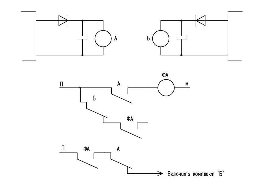 Все равно придется что нить городить, если использовать имеющуюся схему переключения, надо ведь понять что комплект работал и перестал.. Например начать думать с такого несимметричного варианта. ФА - фиксация запуска комплекта А