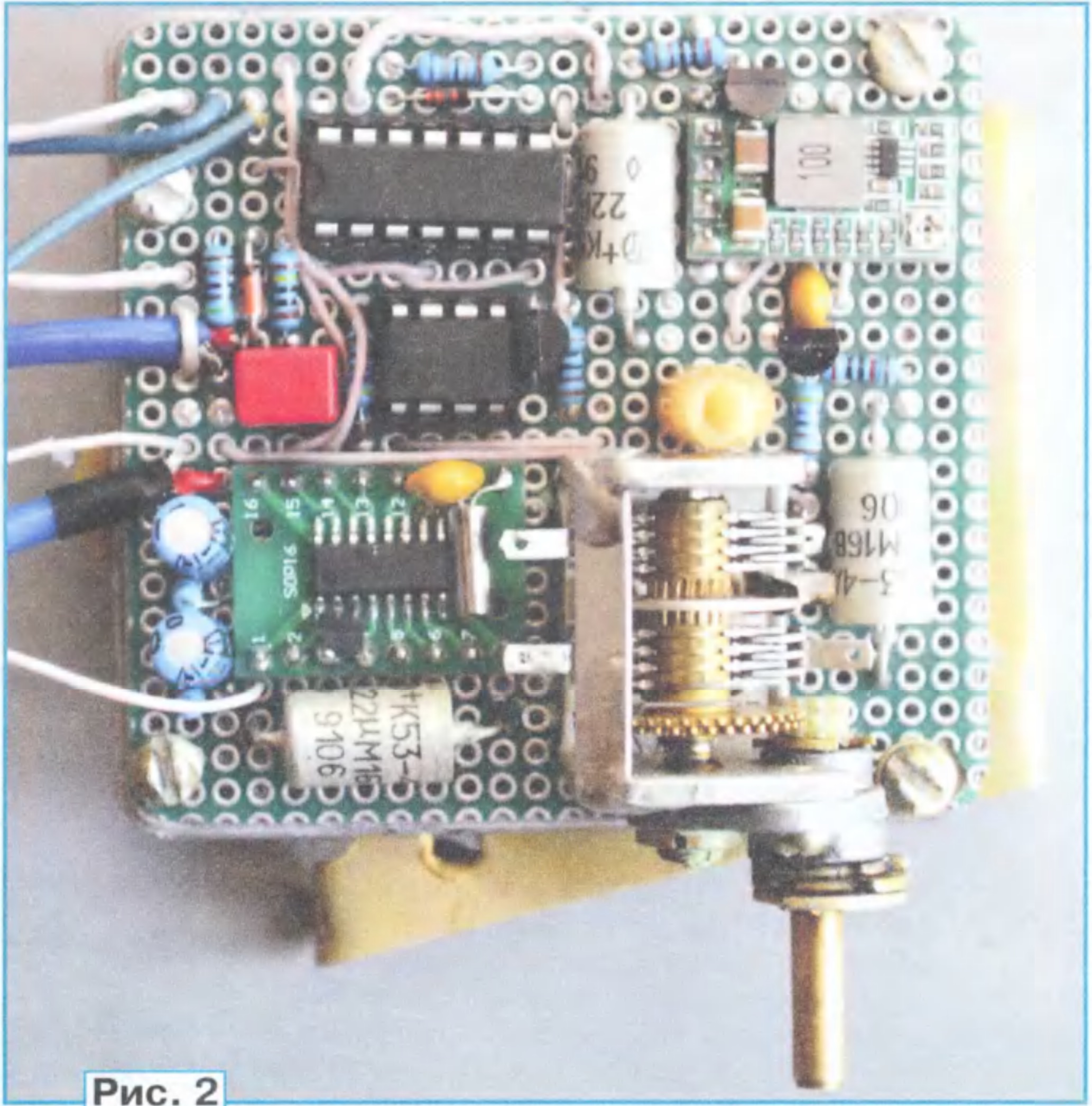 Тема: Встраиваемый УКВ-приёмник RadiofixВстраиваемый УКВ-приёмник Radiofix М. ТКАЧУК, г. Алматы, Казахстан -приёмник Radiofix, описание которого приводится далее, был разработан для встраивания и замены стандартного УКВ-блока в ретроприёмнике "Океан 209". Перестройка по частоте этого приёмника осуществляется с помощью сенсорного элемента, функции которого выполняет штатная металлическая пластина, вмонтированная в ручку для переноски. Внешний вид приёмника "Океан 209" при этом не изменяется. Основой приёмника является микросхема RDA5807FP, представляющая собой однокристальный УКВ-тюнер, который содержит все необходимые узлы и требует лишь небольшого числа внешних компонентов. Управляет этой микросхемой микроконтроллер (МК) PIC12F675-I/P по шине 12С. В приёмнике применена фиксированная настройка на радиостанции УКВ-диапазона. Единственным органом управления приёмником является сенсорный элемент. Частоты радиостанций УКВ-диапазона, вещающих в данной местности, заносятся в память МК, и перестройка происходит перебором частот. Громкость устанавливается регулятором громкости приёмника "Океан 209". Для качественной перестройки имеющегося в ретроприёмнике "Океан 209" УКВ-блока с диапазона OIRT (65,9...74 МГц) на диапазон CCIR (87,5...108 МГц) необходимы специализированные приборы и некоторый запас радиоэлементов. Довольно подробно процесс перестройки описан в [1]. Однако этот путь показался довольно затратным по времени и ресурсам. Для поиска более простого метода внедрения диапазона CCIR были рассмотрены варианты, предлагаемые в сети Интернет. Как известно, там имеется много разных схемных предложений. Это различные приёмники на дискретных элементах и микросхемах. Также в интернет-магазинах можно приобрести уже готовые модули. Широко распространены схемы УКВ-приёмников с управлением от модулей Arduino разной сложности и на любой вкус. Применение в конструкции Arduino было отклонено, ведь уже не приходится говорить о простоте приёмника. Кроме того, использование возможностей Arduino в упрощённом приёмнике является нерентабельным. ![]() За основу предлагаемого приёмника Radiofix была взята информация из статьи [2]. Здесь управление приёмником осуществляет МК серии PIC12F675 — это широко распространённый бюджетный МК. Приёмный узел выполнен на микросхеме RDA5807FP, основные плюсы перечислены выше. Отображение принимаемых частот не реализовано. Схема приёмника Radiofix показана на рис. 1. Номера контактов, к которым он подключается, соответствуют схеме приёмника "Океан 209", которая приведена в [3]. Особенность приёмника заключается в том, что общим проводом является контакт 20, — плюсовая линия питания приёмника "Океан 209". На схеме можно выделить четыре узла. Первый — управляемый понижающий модуль питания А1 [4] с выходным напряжением 3,3 В, который обеспечивает стабильным напряжением все элементы приёмника. Второй узел — обработчик сигнала сенсорного элемента на логических элементах DD1—DD3 микросхемы CD4093B [5]. Эти элементы содержат на входе триггеры Шмитта и выполнены по КМОП-технологии, по этому обладают высоким входным сопротивлением и низким энергопотреблением. Третий узел — управляющий МК DD2 [6], который по сигналу обработчика сигнала сенсорного элемента формирует по шине гС команды для управления микросхемой DA1. В память МК записаны все частоты местных радиостанций. Четвёртый узел — собс