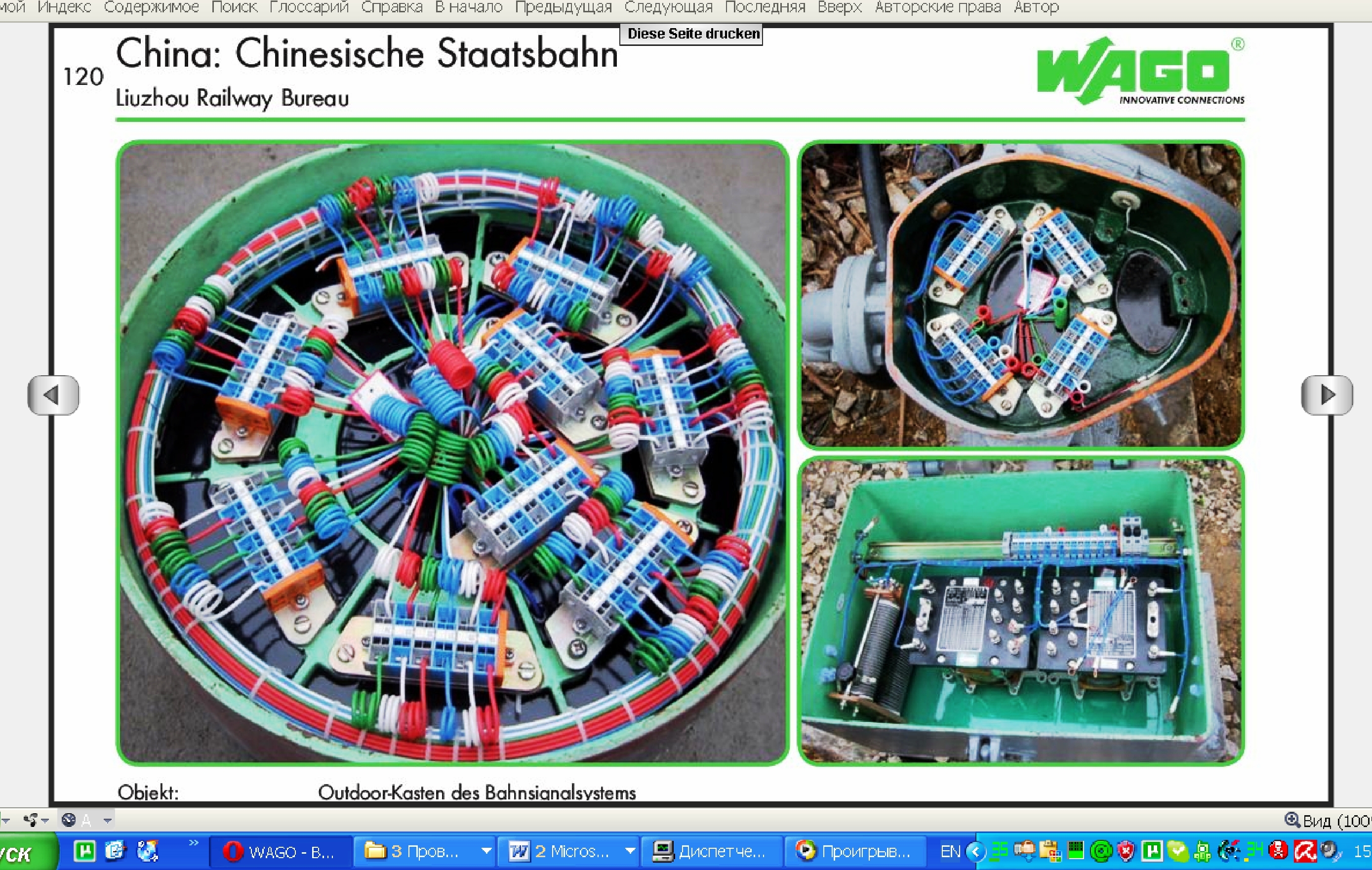 Прошу прощения что криво, но смысл я думаю будет понятен. По сути нарисованы клеммы и на каждой клемме номер чертежа где этот переход. В самом низу написано куда идет кабель (одноименная клемма в другом стативе)