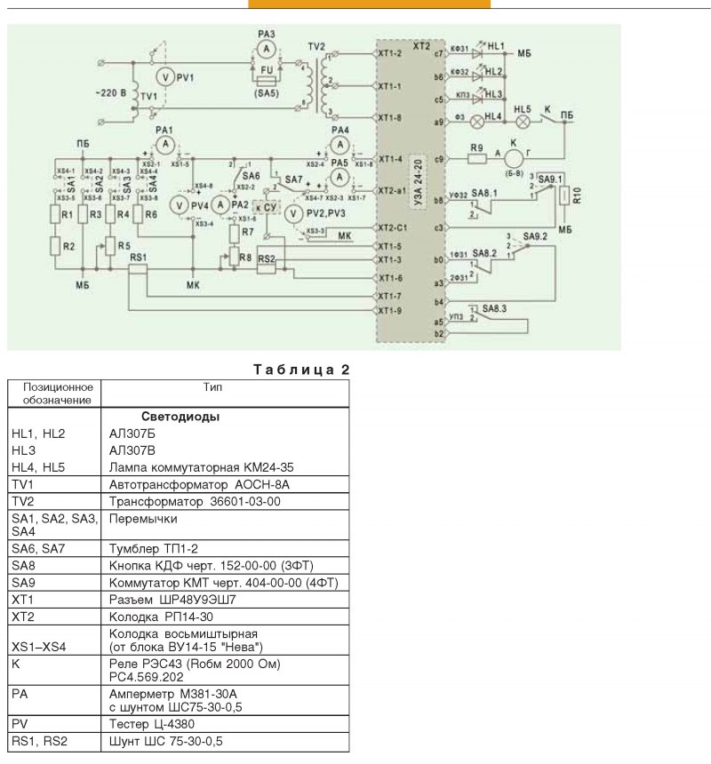 Тема: Стенд для настройки, ремонта и проверки блока УЗА 24-20Стенд для настройки, ремонта и проверки блока УЗА 24-20 Для проверки блока УЗА 24-20 предлагается стенд, который отличается от указанного в "Инструкции по настройке УЗА-24" З6254-00-00И2. В нем значительно сокращено количество приборов и не требуются блок питания Б5-48, мощные, громоздкие выключатели и переключатели. В стенде используются тестер Ц4З80, выносной амперметр МЗ81-З0А и электронный осциллограф-измеритель Fluke-123. Измерительные приборы подключаются к соответствующим гнездам на внешней панели стенда. В качестве источника питания применяется универсальный блок питания универсального стенда для испытания реле и дешифраторных ячеек СУ. При настройке, ремонте и проверке блока УЗА-24 на стенде полностью соблюдается технология в соответствии с инструкцией. Конструктивно стенд выполнен в корпусе выпрямительного устройства ВУ14/1,5, имеет небольшие размеры. Его масса без трансформатора TV2 не более семи килограмм. Принципиальная схема стенда приведена на рисунке, тип и номинальные значения элементов - в табл. 1 и 2. ![]() ![]() Предлагаемый стенд позволяет отказаться от закупки заводского оборудования стоимостью 87 тыс. руб. С.А. Ермышкин, А.Н. Кайманаков, электромеханики КИПа Петров-Вальской дистанции Приволжской дороги |
