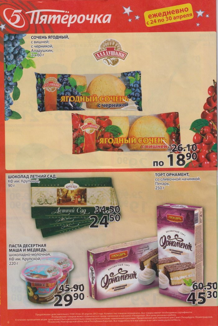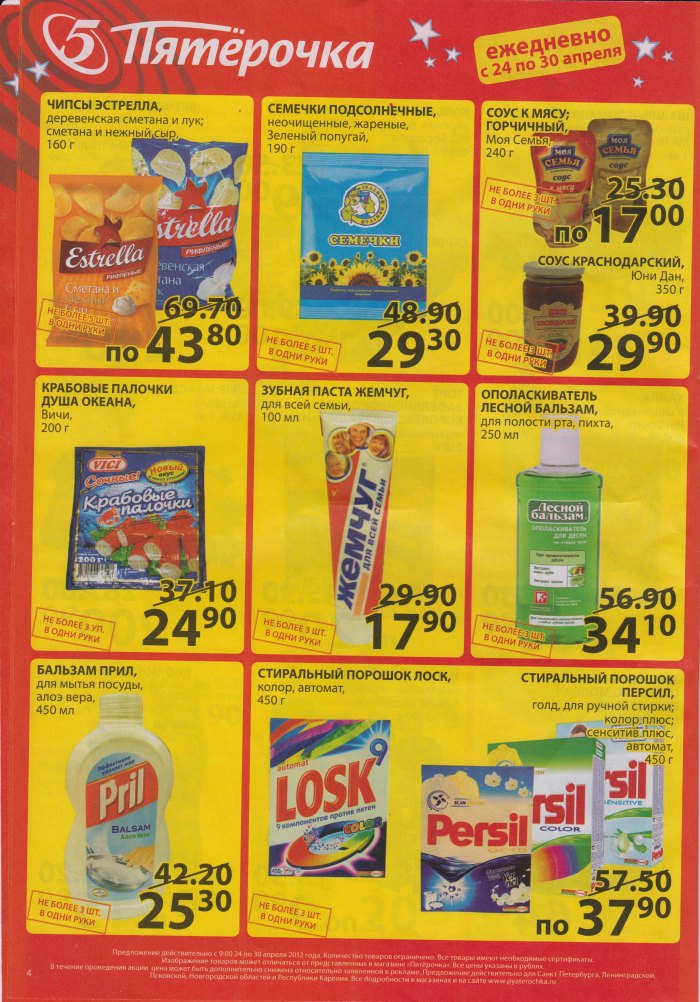 Тема: Магазин "Пятерочка" - акции, обсуждениеМагазин "Пятерочка" - акции, обсуждение Данный магазин знаком большой части населения России и представлен во многих ее регионах. В данной теме можно обсудить Пятерочку - качество товаров и обслуживание, цены. Текущие акции в Пятерочке: ![]() ![]() ![]() ![]() ![]() ![]() ![]() ![]() Последний раз редактировалось Admin; 26.04.2012 в 21:10. |