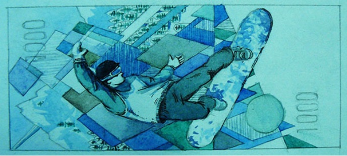 Автором идеи оригинального рисунка стал 25-летний Павел Бушуев - студент 5 курса факультета графики Государственного института живописи, скульптуры и архитектуры имени Репина при академии художеств в Санкт-Петербурге. Павел выиграл конкурс, специально организованный ЦБ РФ и ГосЗнаком. Блогеры выяснили, что дизайн сторублевой купюры, выпущенной к Олимпиаде 2014 в Сочи, является неоригинальным. Рисунок-победитель, который представил на конкурс студент петербургской Академии художеств Павел Бушуев, нашелся в бесплатной фотобазе от 2005 года. Исходная фотография обнаружилась и в учебнике по фотошопу 2011 года, как раз когда проводился конкурс. Не везет Олимпиаде 2014 в Сочи: факелы то тухнут, то взрываются, о коррупции при строительстве олимпийских объектов не говорят только центральные каналы, фотографии не готовых спортивных комплексов не выходят из интернета. И вот новый скандал: на этот раз с распиаренным выпуском специальной олимпийской сторублевки. Ранее сообщалось, что ровно за сто дней до Олимпиады в Сочи 31 октября 2013 года Центробанк выпустил тиражом 20 миллионов олимпийскую 100-рублевую купюру, выполненную по оригинальному рисунку в синих тонах. Сообщали, что к началу Олимпиады в Сочи новая купюра должна уже поступить во все российские регионы, а банкоматам "разъяснят", как ее выдавать и принимать. СМИ с удовольствием писали, что выпуск олимпийской купюры происходит впервые, ранее появлялись только монеты и медали. Кроме того впервые рисунок на купюре не горизонтальный, а вертикальный. Автором дизайна олимпийской сторублевки стал по итогам конкурса простой петербургский студент Павел Бушуев - будущий художник из Санкт-Петербургской Академии художеств имени Репина. Купюра поступила в свободный оборот 31 октября, а уже 1 ноября разразился скандал. Оказалось, что фото сноубордиста, которого автор дизайна разместил на олимпийской сторублевке, взято с сайта уроков фотошопа, также она имеется в бесплатном фотостоке. В марте 2013 года, когда Центробанк впервые продемонстрировал дизайн купюр, Бушуев заявил в интервью, что хотел создать "что-то новое, современное и молодёжное", раскопал портал Tjournal.ru. "Я рассматривал разные варианты - фигурист, конькобежец, биатлонист. Я смотрел марки и купюры, которые выпускались в разных странах к Олимпийским играм. Сноубордиста нигде не было. Это, собственно, и неудивительно: сноуборд - относительно молодой вид спорта", - заявил победитель. Однако, когда фото купюры опубликовали в СМИ, блогеры заметили, что фотография этого же сноубордиста есть на сайтах с бесплатными изображениями. В частности, фото можно найти в бесплатном StockExchange, изображение датировано 2005 годом, пишет издание. "Несмотря на то, что в прыжке все сноубордисты более-менее похожи друг на друга, в дизайне Бушуева заметно использование стоковой фотографии. Об этом говорит не только идентичная поза спортсмена, но и детали его одежды: застёжка перчатки, расположение карманов, складки на рукаве куртки и на штанах", - отметил автор расследования. Кроме того, эта же самая фотография используется в уроке по Фотошопу, опубликованном на российском портале "Мегаобзор". Сам конкурс на создание олимпийской купюры проходил в начале 2011 года, а материал урока Фотошопа датирован 18.01.2011. Урок называется: "Сноубордист в прыжке, создание интересного постер