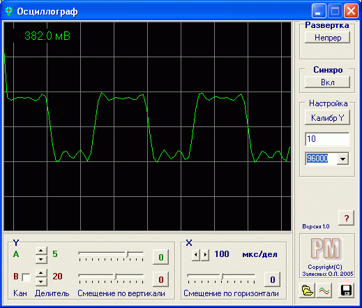 увы это мы не увидим. Rafa добавил 17.05.2015 в 17:54 сейчас очень много виртуальных приборов. так что используя звук. кар. и ноутб. мона работать эффективнее. Rafa добавил 17.05.2015 в 17:57 Превращаем компьютер в измерительную мини-лабораторию. Как выяснилось, при повторении схемы Цеппера у многих возникли проблемы по причине отсутствия каких либо приборов, позволяющих контролировать и настраивать схему. Вашему вниманию предлагается небольшой обзор виртуальных приборов, которые позволяют на базе компьютера, вернее на базе звуковой карты компьютера просто и быстро организовать измерительную мини-лабораторию. Мини - не потому что она маленькая, а потому что ее возможности ограничены свойствами звуковой карты, которые не позволяют посмотреть на виртуальном осцилографе постоянную составляющую сигнала и верхняя частота измеряемого сигнала будет ограничена частотой 18...20 кГц. Прежде чем использовать звуковую карту для измерений, необходимо собрать небольшую схему-переходник, которая позволит безопасно подключать измеряемые цепи ко входу звуковой карты, не опасаясь вывести из строя саму карту, а возможно и материнскую плату. Выглядит она так... Нажмите на изображение для увеличения Название: 1.jpg Просмотров: 26160 Размер: 12.7 Кб ID: 3773 Схема представляет собой обычный делитель. При том, что питание Цеппера составляет обычно 9 вольт, то даже при возможных повреждениях в схеме Цеппера напряжения на выходе делителя не превысит 0,3 вольта. Обычно рекомендуют, чтобы напряжение сигнала, подаваемое на вход записи звуковой карты не превышало 0,5 вольта. На случай, если напряжение по каким-либо форс-мажорным обстоятельствам все-таки превысит допустимое, на выходе переходника включены встречно-параллельно кремнивые диоды. Можно использовать любые. Падение напряжения на кремниевых диодах составляет 0,6-0,7 вольта, поэтому если сигнал на входе карты меньше этого значения, диоды закрыты. Как только напряжение превисит величину 0,6-0,7 вольта, диоды откроются и защитят вход звуковой карты от повреждения. В качестве измерительного щупа используем обычный индикатор. Разбираем его, избавляемся от "внутренностей", кроме пружины - она будет прижимать переходник к электроду измерительного щупа. Сам переходник помещаем внутри индикатора. В качестве кабеля используем полтора метра коаксиального кабеля РК-50. Надфилем придаем электроду более заостренную форму - и вот что получаем. Нажмите на изображение для увеличения Название: 2.jpg Просмотров: 24975 Размер: 30.9 Кб ID: 3774 Предупреждение - схема переходника настолько проста, что при повторении надо постараться, чтобы ее испортить! Поэтому, автор не принимает претензии по поводу безвременно сгоревших звуковых карт по причине "кривых" ручек. Прежде чем пользоваться виртуальными приборами, заходим в свойства звуковой карты и выполняем последовательно команды - "Параметры" - "Свойства" - "Запись"-"Ok" . И в открывшемся окне ставим галочку "Выбрать" в поле "Line IN" . Нажмите на изображение для увеличения Название: 3.gif Просмотров: 24592 Размер: 21.1 Кб ID: 3775 Виртуальный осциллограф Этот осциллограф - двухлучевой и чтобы использовать эту его возможность надо будет собрать еще один переходник, подключив его к другому каналу записи звуковой карты. Вот как выглядит программа. Нажмите на изображение для увеличения Название: 4.gif Просмотров: 24424 Размер: 25.6 Кб I