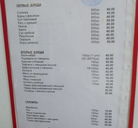 Таки опять заехал ненадолго в ДОЛБ депо Тимашевская. Стало ничуть не хуже, чем было полтора года назад. Пообедал на 95 руб: суп-лапша с вкраплениями курицы, каша гречневая, две куриные отбивные в кляре, хлеб, компот. На следующий день позавтракал пловом - 35 руб+компот. На обед слопал кашу гречневую, салат, две котлеты, компот - 110 руб.