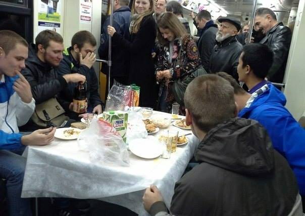 Такой же флэш-моб прошёл на нескольких метрополитенах одновременно. В частности в Киеве одновременно на всех линиях.
