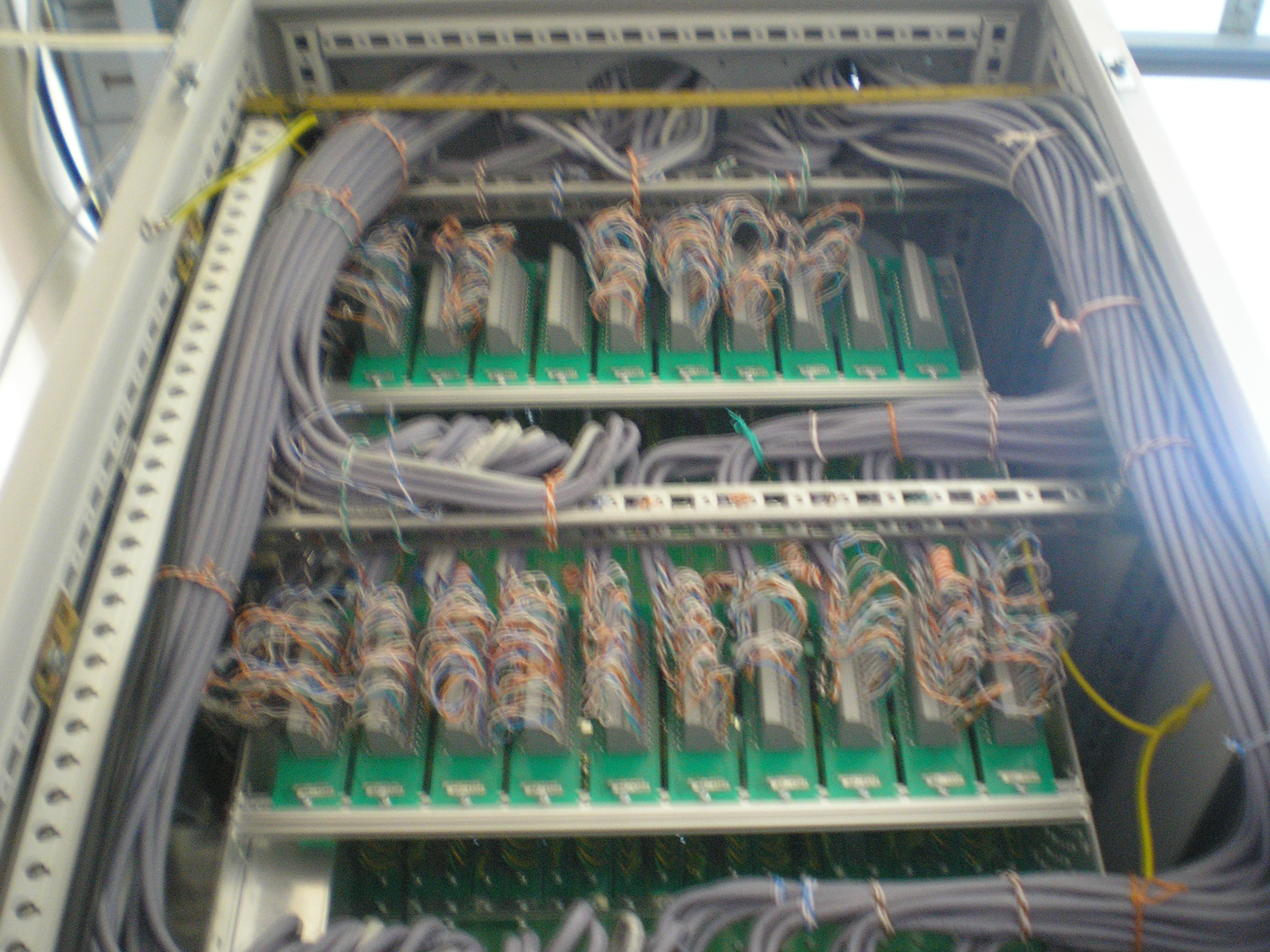 вот кстати шкаф УВК МПЦ-2 ![]() как видно на фото, в шкаф понапиханы не только все платы, но и бесперебойник для собственного питания Плюсы ЭЦ-ЕМ перед МПЦ-2: 1. За счет того что ЭЦ-ЕМ всегда проектируется совместно с совмещенной питающей установкой с двумя ИБП Site Pro - надежность работы выше благодаря качетсвенному электропитанию 2. В УВК ЭЦ-ЕМ интегрирован компьютер контрольно-согласующего устройства, постоянно собирающий подробную информацию о состоянии объектов 3. Налаженное производство, фактически потоковое производство, станций с ЭЦ-ЕМ на порядок выше чем с МПЦ-2 4. Удобство в обслуживании - например, чтоб вытащить плату в ЭЦ-ЕМ достаточно отщелкнуть экстрактор, в МПЦ-2 нужно вывинчивать винт 5. В УВК РА (ЭЦ-ЕМ) для разводки приходящего со стативов кабелей служат специальные шкафы, перемонтаж осуществляется очень легко. В МПЦ-2 кабель втыкается напрямую в шкаф УВК и свисает гроздьями с кабель-роста разводка в МПЦ-2: Щелкните, чтобы увидеть содержимое