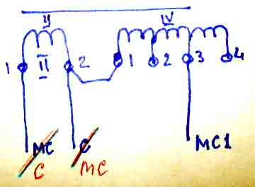 по схеме 4 обмотка включена встречно как мы ее подключили не припоминаю , но напряжение С-МС1=22 В , а по высокой обмотке реле не встает только дергается завтра еще раз попробую а то у меня для макета ПОБС-2 попробую с большим напряжением