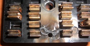 Как видно болт уменьшает растоянии между контактами. Не первый раз приходится сталкиваться, почему-то при прогорании, материал платы становится хорошим проводником ![]() |
