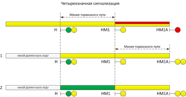 Когда НМ1А - два желтых, маршрут до Н также кодируется кодом Ж, но в тяговых про это ничего не сказано. |