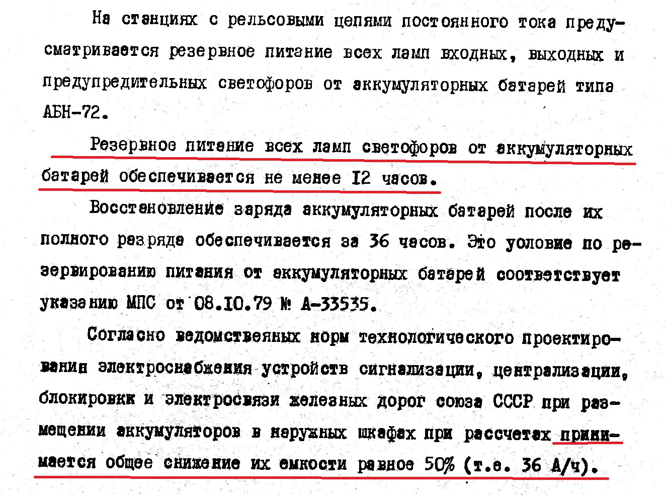 ![]() Понял. На странице 6 альбома РПБ-82 написано, что при РЦ постоянного тока резерв должен быть 12 часов. Получается альбом предусматривает для РЦ постоянного тока резерв 12 часов, а для РЦ переменного тока - 8 часов. Теперь логику альбома понял. Спасибо! Если применить требование альбома о времени резервирования и применить к своим выходным светофорам, то с учётом принятого альбомом снижения ёмкости АКБ до 36А/ч, время резервирования будет - 36А/ч:6А=6ч. А сейчас какое снижение ёмкости АКБ применяется для расчётов времени резервирования от АКБ??? |