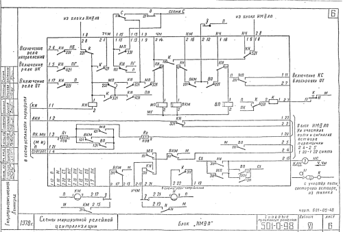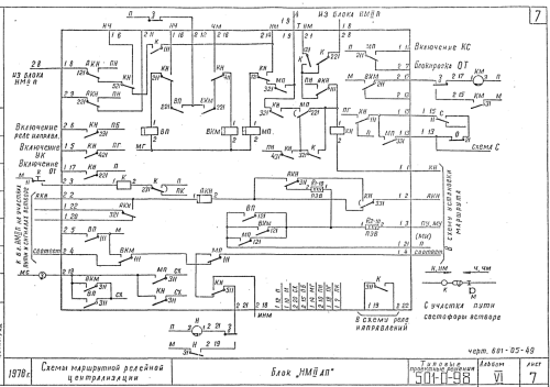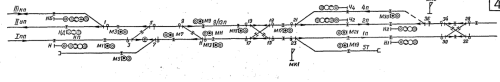 Если кнопка М13 нажимается конечной в маршруте от М1 до М13, то от шины НМ в блоке светофора М11 (НМIIП) включится кнопочное реле КН и загорится соответственно зеленая ячейка у светофора М11. Далее работа схемы понятна. Допустим, кнопка М13 нажимается второй (вариантной) в поездном маршруте от НД на второй путь (для движения «по корыту»). Как должны включиться КНы в блоках М11 и М13 после нажатия кнопки М13? ![]() ![]()