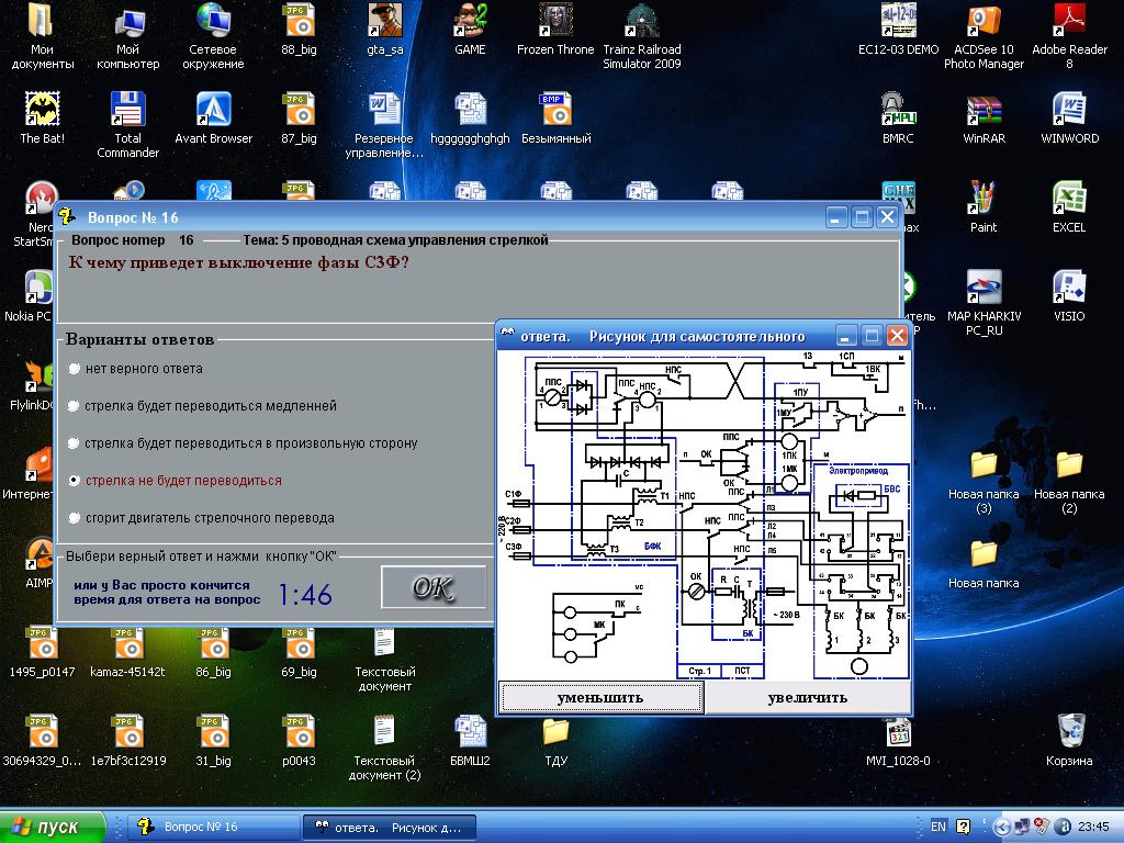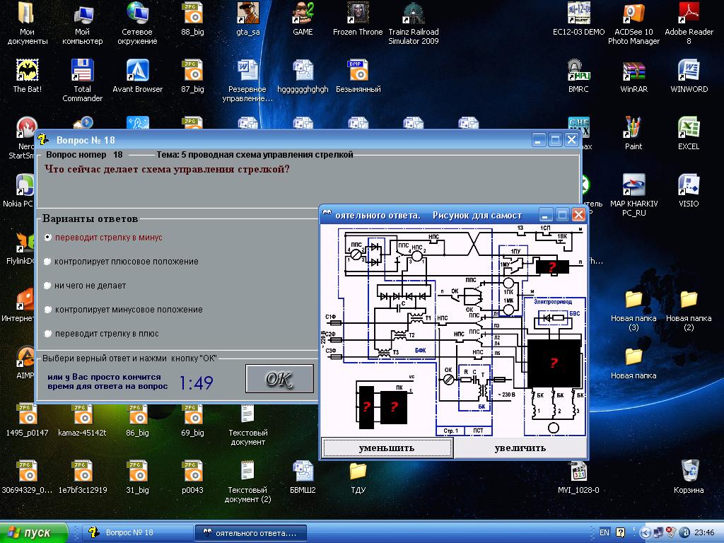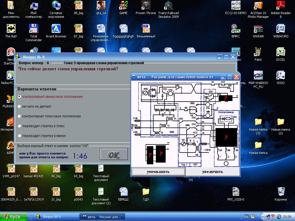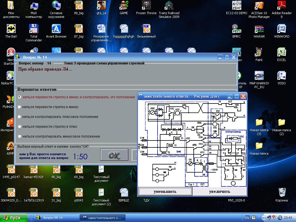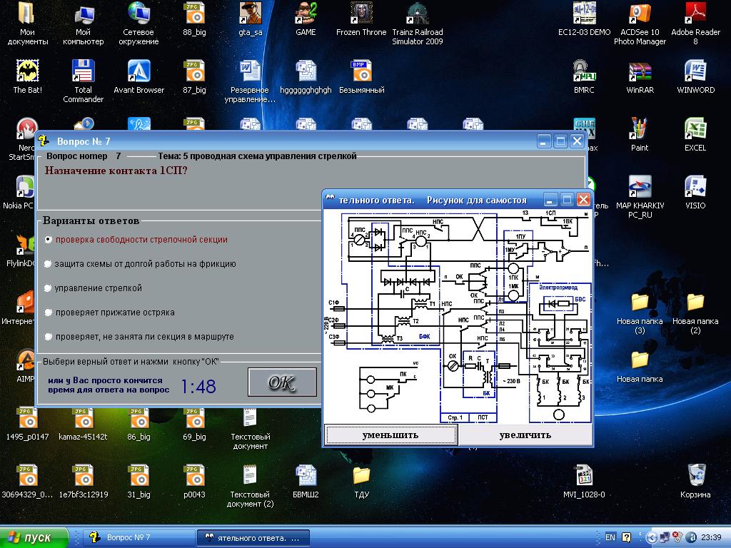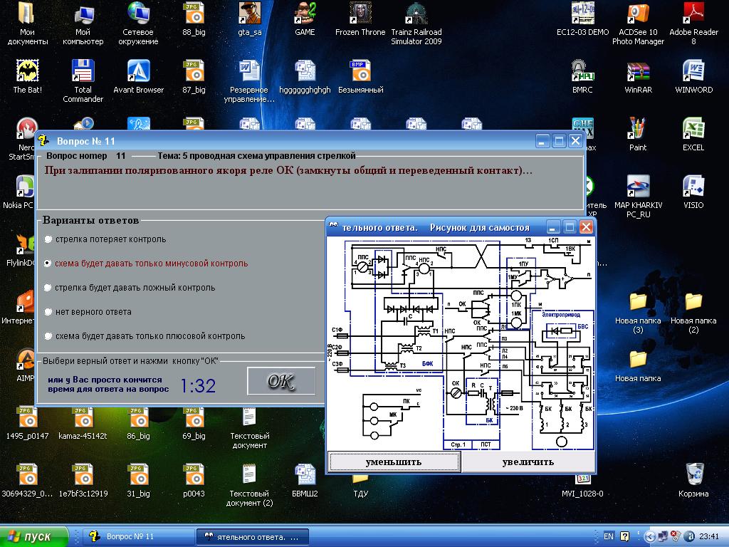VIC добавил 30.08.2010 в 15:32 ну так написано же "перемычка ДТ релейного конца" конечно считается что та что к рельсам ... пробой изостыков согласен тоже не додумал, при ТРЦ стрелка будет как ни в чем ни бывало переводиться (кроме стыка с КСС) VIC добавил 30.08.2010 в 15:37 если есть желание улучшить тест можете написать мне вопрос и варианты ответов (только один верный) и я переделаю если время найду Последний раз редактировалось VIC; 30.08.2010 в 17:37. Причина: Добавлено сообщение |
