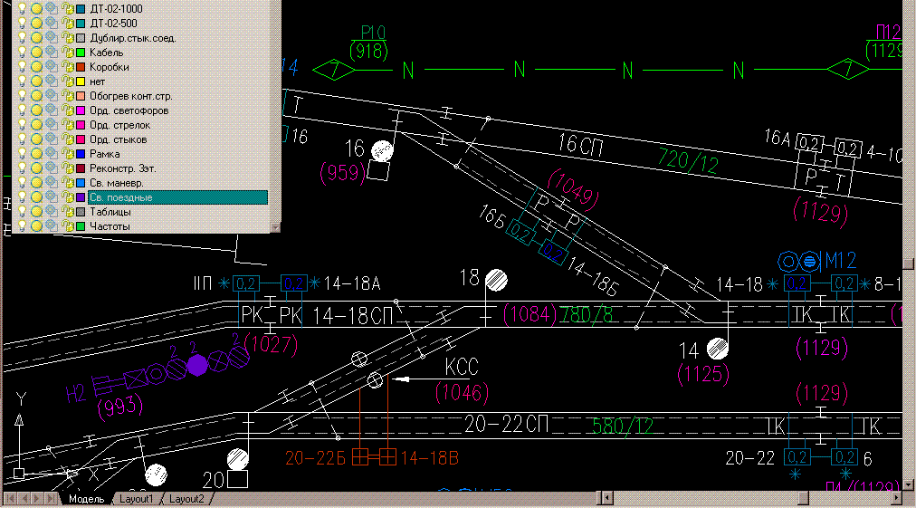 Вот так меня когда-то учили чертить двухниточные планы: http://scbist.com/scb/uploaded/643_acad_dvuhnitka.gif Всё сделано слоями. Например, прикинуть сколько на станции ДТ-0,2-1000 можно парой щелчков мыши: отключить всё кроме слоя "ДТ", "выделить всё" и можно смотреть кол-во выделенных объектов :) |