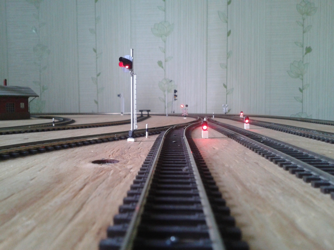 Ну вот и еще немного продвинулись. Ключи управления огнями спаяны и установлены. Полным ходом идет стройка депо и монтаж освещения внутри. Установлен пост централизации "Промышленной" станции станции.